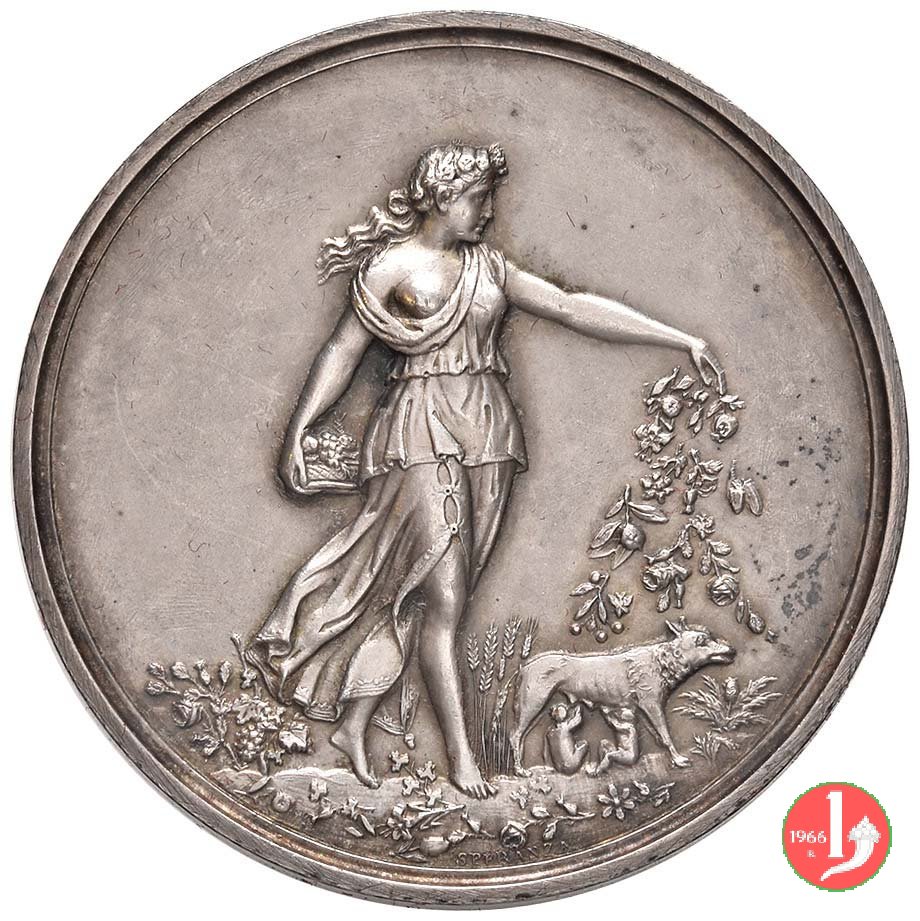 Tiro a Segno Bologna -C- Obverse: Atleta nudo, in piedi, volto a dx, regge arco e figura allegorica della vittoria alata in volo a dx in basso, a sx: SJ in basso, a dx, monogramma: SE in esergo: aquila ad ali spiegate su bersaglio coronato | |