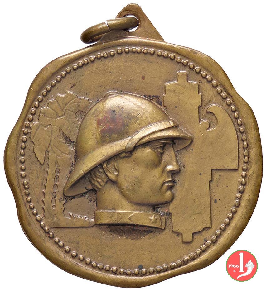 Dritto: testa elmata di Mussolini a sx