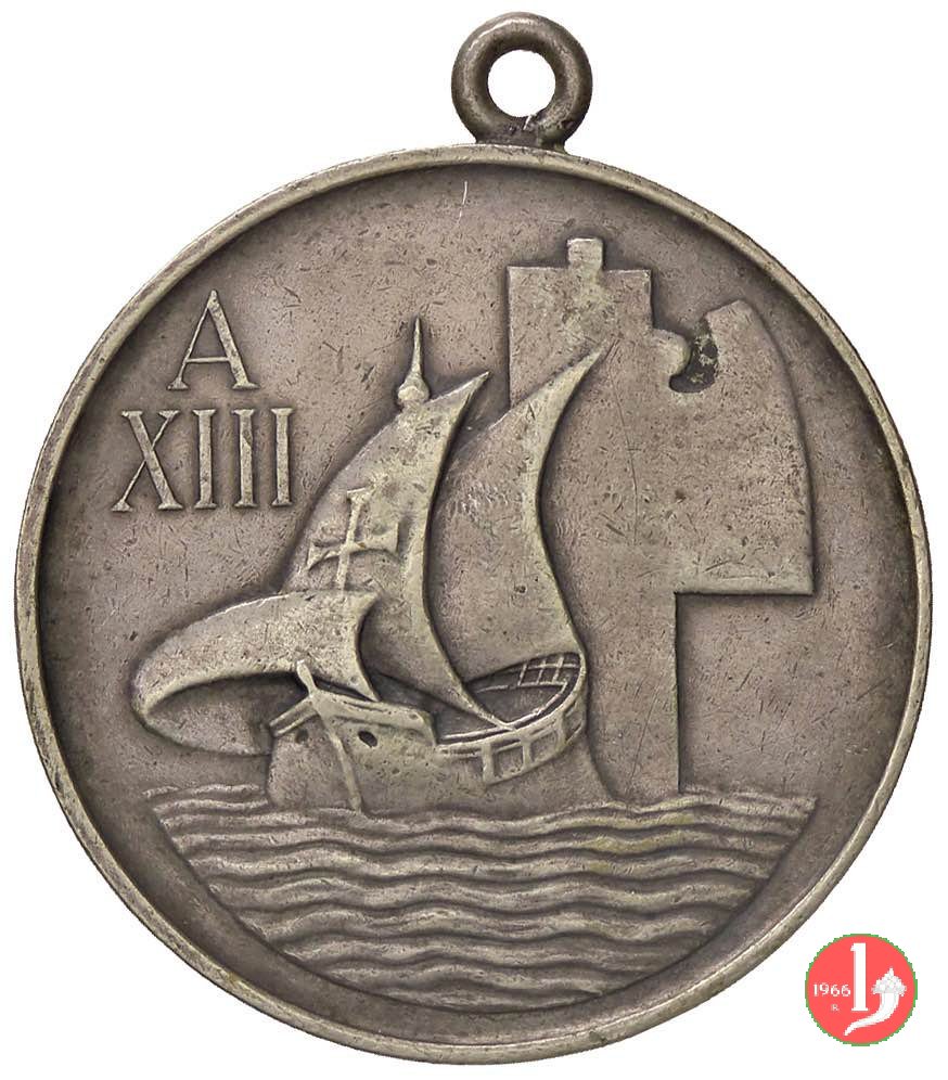 Verso: entro targa tra fronde di alloro e quercia sui quattro lati: tra fasci verticali con lame convergenti al centro G.R.F. SOCRATE = CAMPIONATO = RIONALE = ANNO = XII - XIII