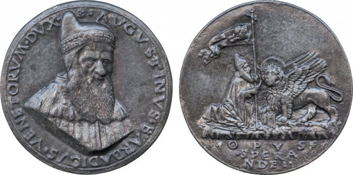 Agostino Barbarigo -V1277 Obverse: AVGVSTINVS BARBADIGVS VENETORVM DVX busto di fronte in esergo: • OPVS • = • SPERA = NDEI • | |