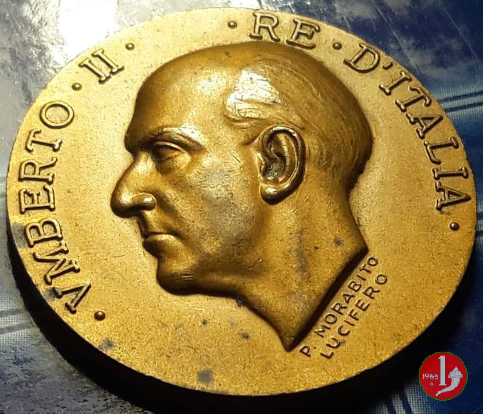 entro medaglia: busto di Umberto II a sx con divisa militare