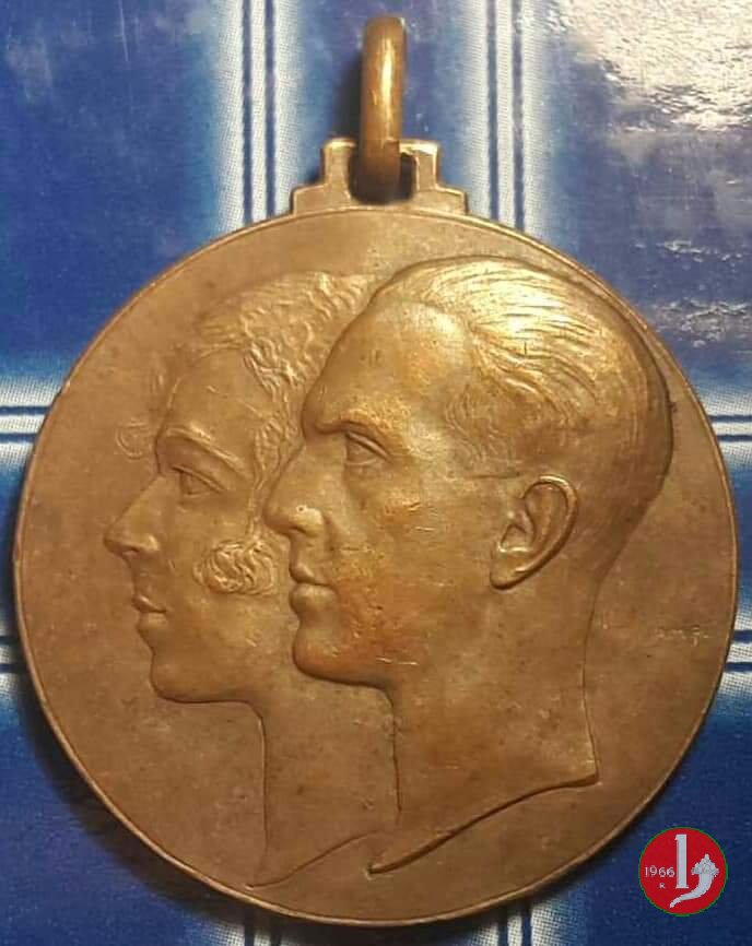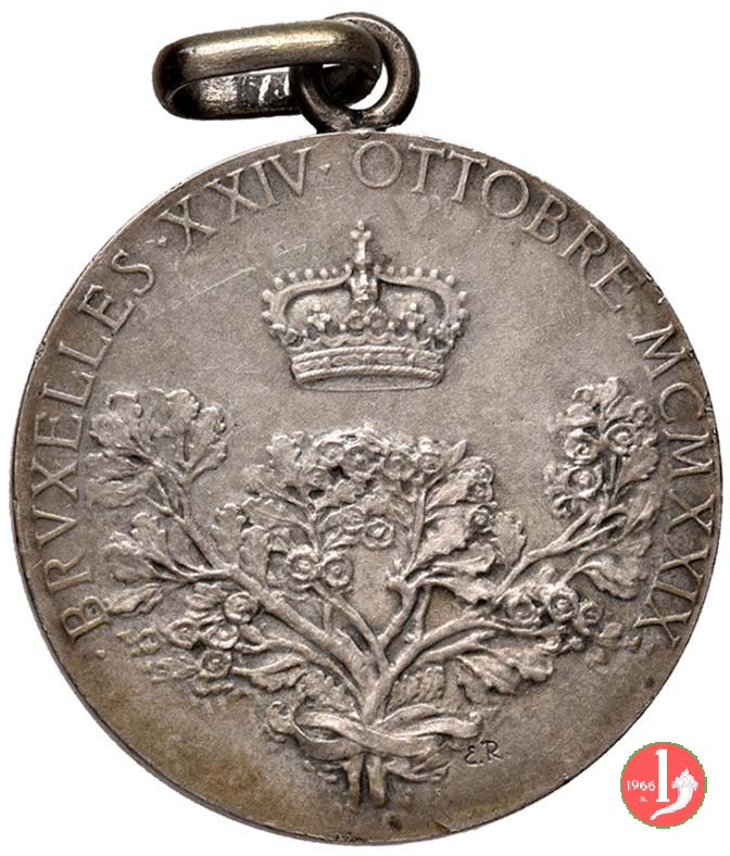 Verso: BRVXELLES XXIV OTTOBRE MCMXXIX alberi di quercia e d'alloro intrecciati e fioriti, sormontati da corona e legati in basso da nodo d'amore