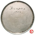 Verso: entro cordoncino con sei nodi d'amore e sormontata da stemmi coronati d'Italia e del Belgio: ALLA = COPIA AUGUSTISSIMA = DEVOTAMENTE DEDICA = GIUSEPPE DEL GAMBA = NEL GIORNO