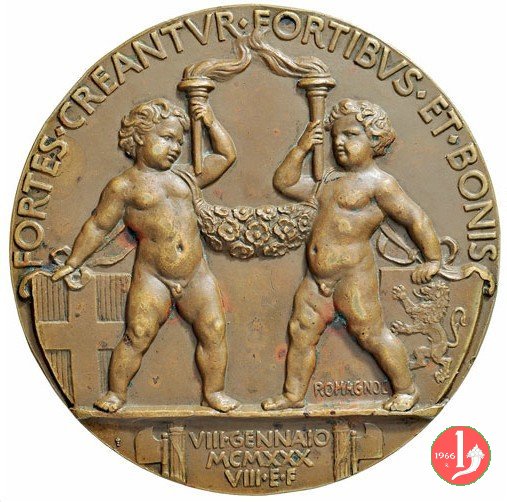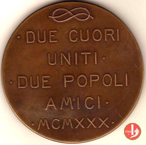 Verso: nel campo: nodo d'amore = • DUE CUORI = UNITI • = • DUE POPOLI = AMICI • = • MCMXXX •