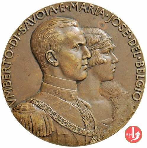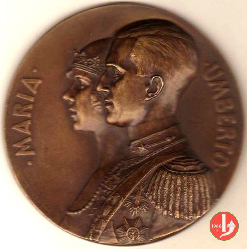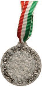 busti accollati a sx di Maria Josè con corona e collana di perle e di Umberto II con divisa miliatare , collare e decorazione della SS. Annunziata, placca di San Lazzaro e placca dell'Ordine di Leopoldo del Belgio