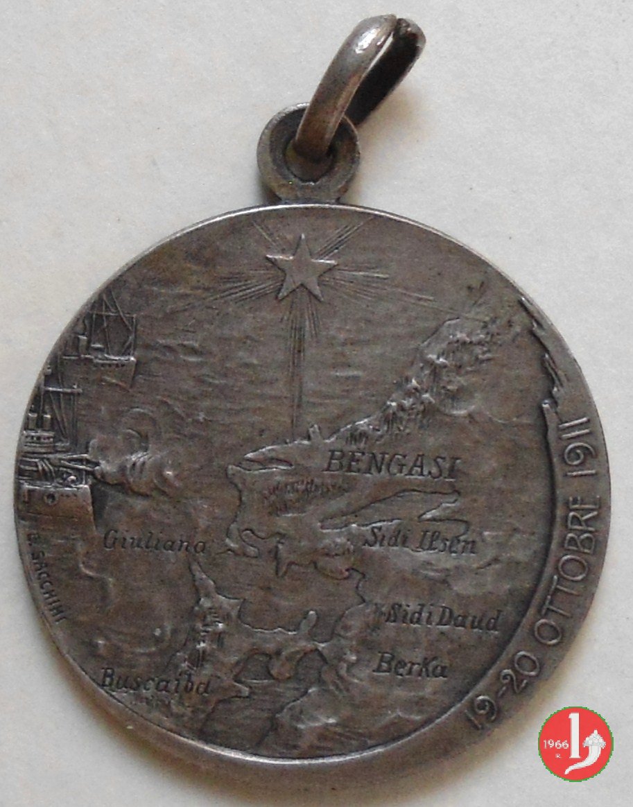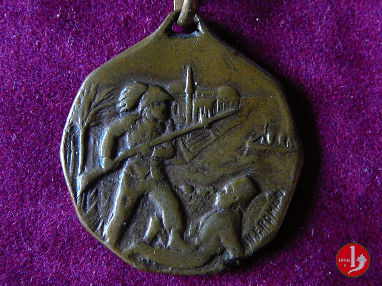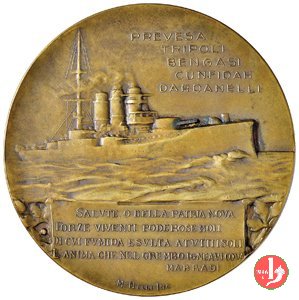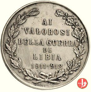 Verso: entro rami di quercia e d'alloro legati in basso da nastro: AI = VALOROSI = DELLA GUERRA = DI = LIBIA = 1911 - 912