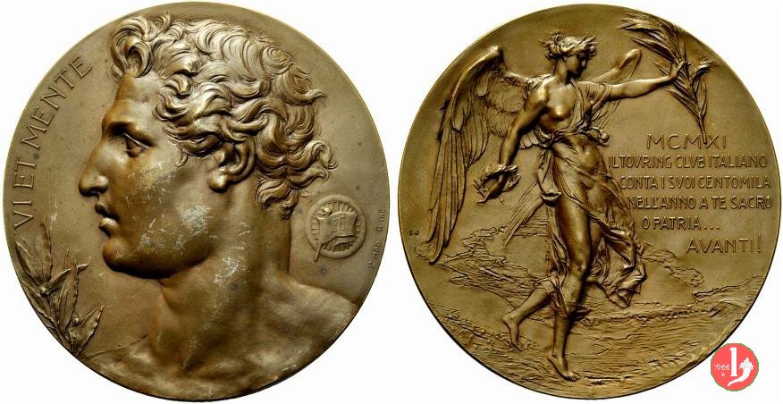 nel campo, a dx: MCMXI = IL TOVRING CLVB ITALIANO = CONTA I SVOI CENTOMILA = NELL'ANNO A TE SACRO = O PATRIA... = AVANTI!
