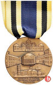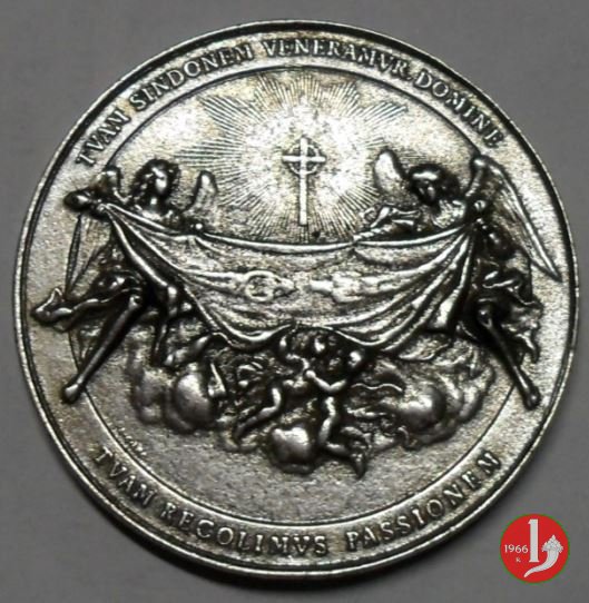 Verso: entro cornice di calici: Stemmi affiancati e coronati del Belgio e dei Savoia separati da Aquila Savoia