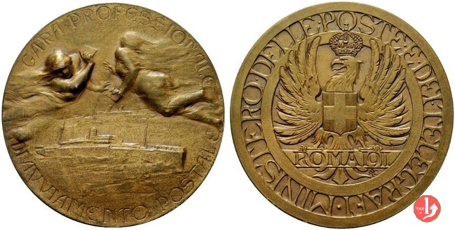 Aquila Savoia coronata regge nastro con artigli, su cui: ROMA 1911