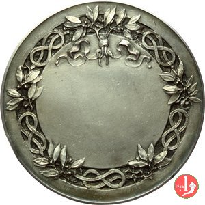 Verso: entro cerchio incavato con rami d'alloro sormontati da cinque nodi d'amore e legati in alto da nastro: campo vuoto per dedica