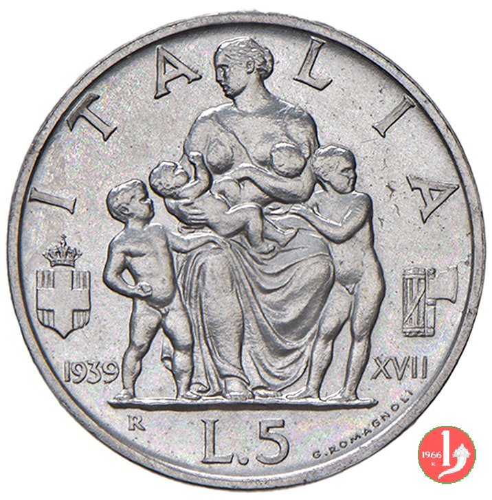 prova 5 lire famiglia (1939 - Roma) Esperimento in alluminio Verso | anonimo | Sat 26/04/25 - 23:38 | ||