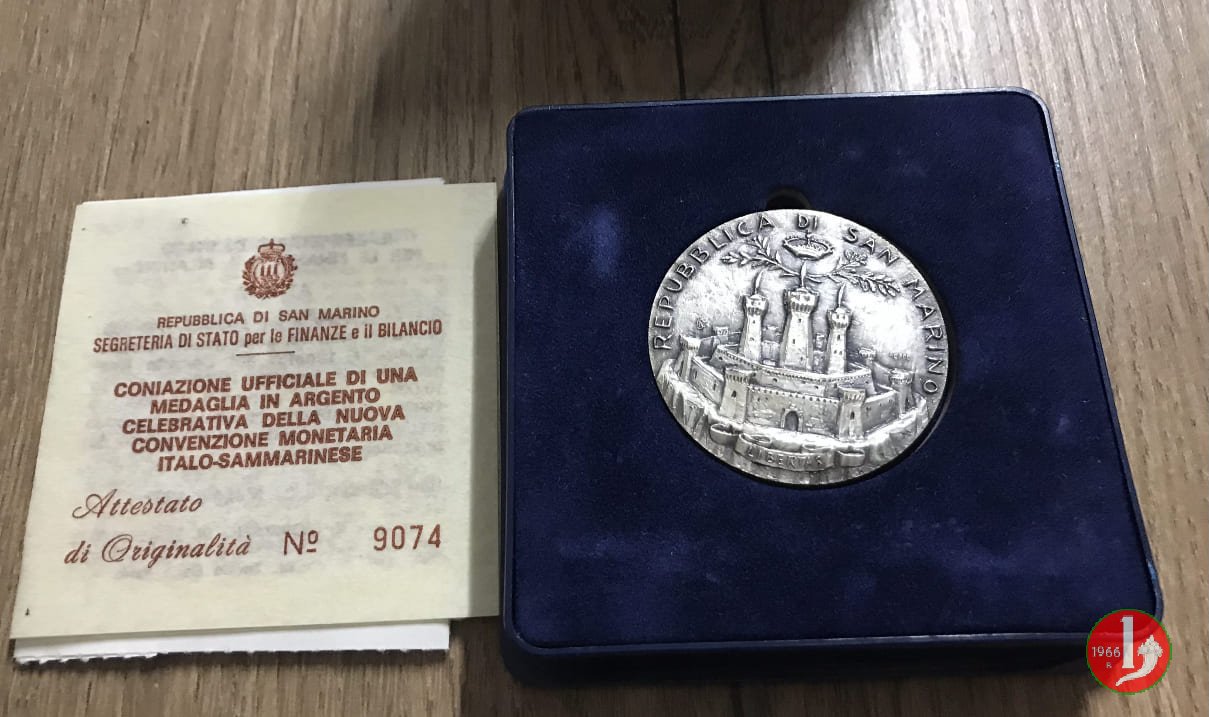 Nuova Convenzione Monetaria 1982 (1982 - Roma) medaglia argento celebrativa della nuova convenzione monetaria italo-sammarinese con cofanetto originale • | anonimo | Fri 7/03/25 - 18:52 | ||