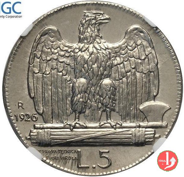 prova tecnica 5 lire (1926 - Roma) Verso | Aurora Numismatica | Sat 15/02/25 - 17:43 | ||