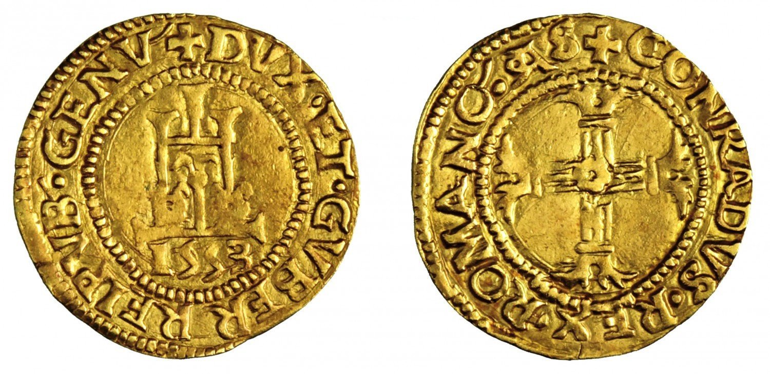 mezza Doppia (o nuovo Scudo d'oro) (1553 - Genova) Asta Varesi 70, lotto 318 (B) Entrambe le facce | Numismatica Varesi | Mon 16/10/23 - 18:40 | ||