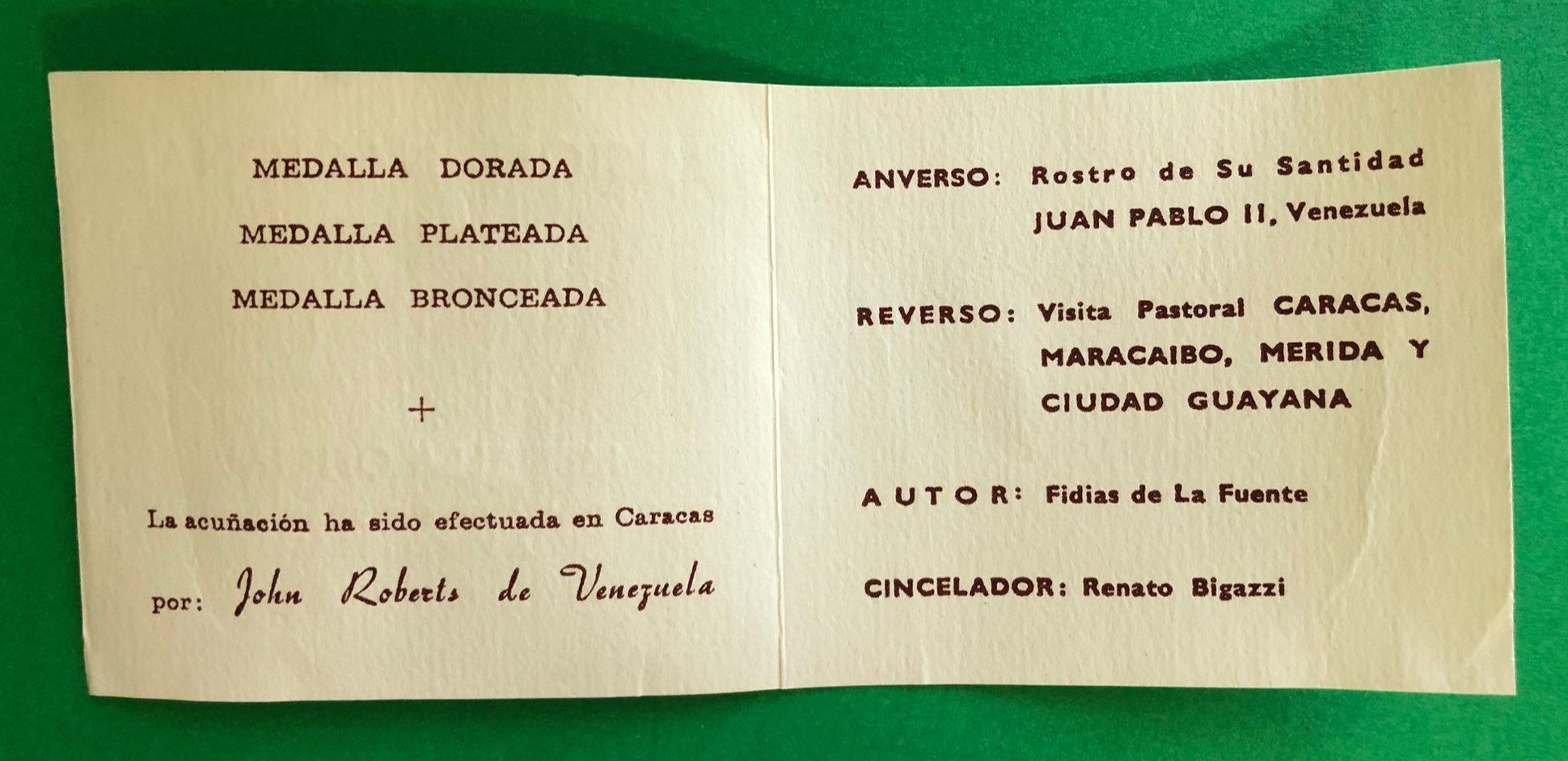 Visita in Venezuela 26-01-1985 (1985) (D) Dritto | Pietro Barbero | Wed 15/05/24 - 01:05 | ||