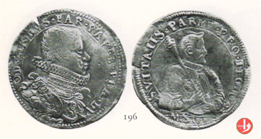 1/2 scudo (1636 - Parma) Foto del catalogo asta Munzen und Medaillen AG n. 36 del 14-15 giugno 1968: 196 PARMA. Odoardo Farnese Duca 1622-1646. Mezzo Scudo 1636. Rv Mezza figura di San Vitale a destra corazzato, tiene uno scettro. CNI -. Data inedita. Molto Bello. Il lotto è stimato 700 SFR. Entrambe le facce | anonimo | Sun 6/02/11 - 16:42 | ||
