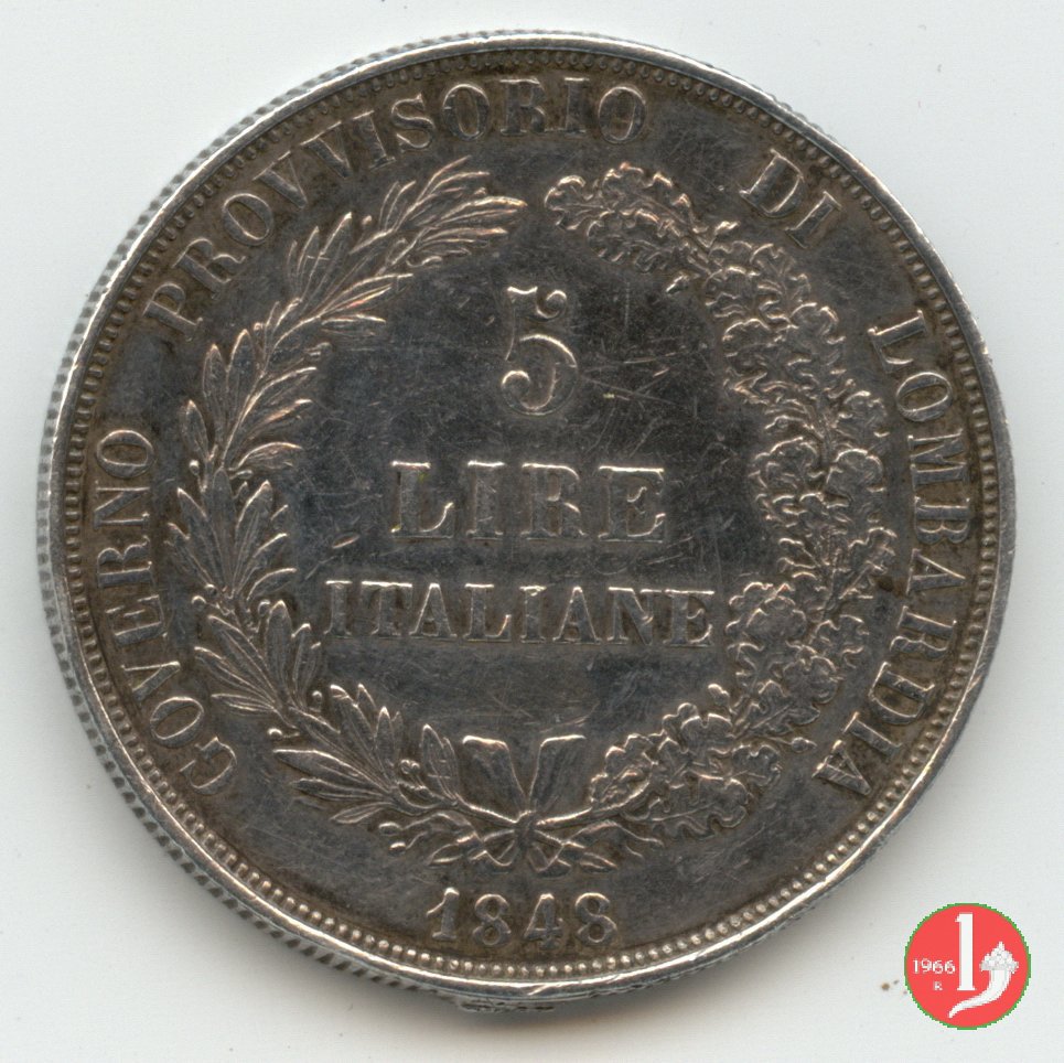 5 lire italiane (1848 - Milano) Verso | Thu 1/10/09 - 18:08 | |||