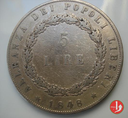 5 lire italiane (1848) FALSO MUY BUENA FALSIFICACION PERO, SU PESO ES BAJO Y SU DIAMETRO NO ES EL REQUERIDO Dritto | anonimo | Mon 7/02/11 - 01:27 | ||