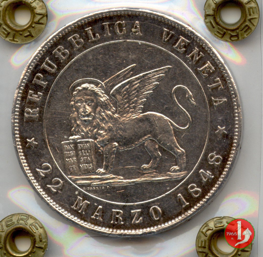 5 lire 22 marzo 1848 (1848 - Venezia) Tevere: piccola mancanza di metallo al D/ SPL | Fri 5/02/10 - 19:51 | |||