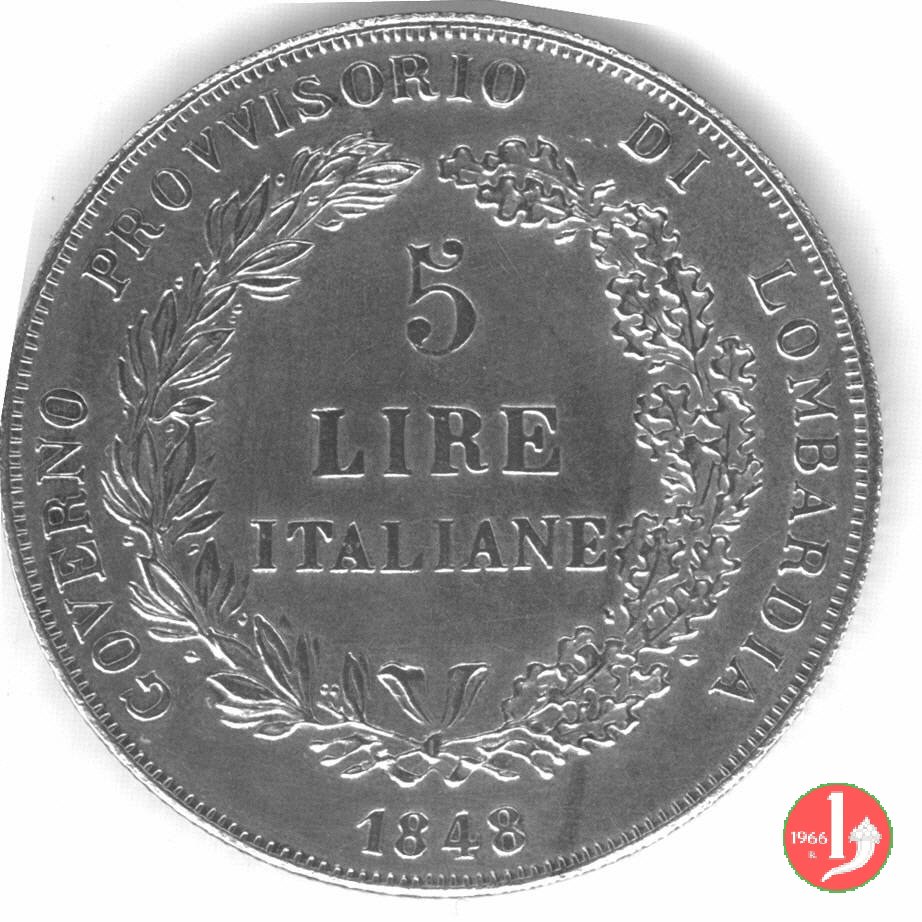5 lire italiane (1848 - Milano) stella vicina alla testa, basamento spesso (rarità R2) () Verso | favaldar | Mon 10/10/05 - 14:43 | ||