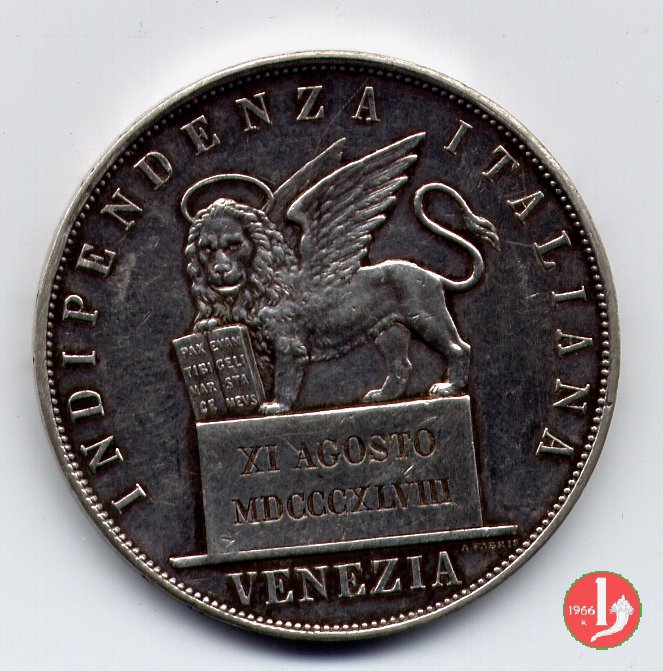 5 lire 11 agosto 1848 (1848 - Venezia) Varesi BB/SPL | Thu 6/12/07 - 20:24 | |||