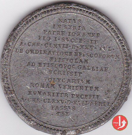 17- Di restituzione Lauffer (1712 - Norimberga) DRITTO: tonsured bust right S.ANICETVS__PONT.MAX P.H.M. on truncation ROVESCIO: biography in Latin tin (Sn) Other references: