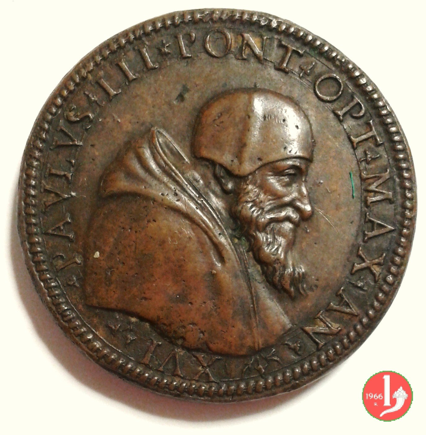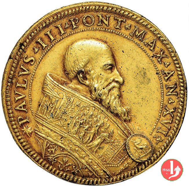 Restauri e abb. di Frascati-busto a sx -Mo347 (1549) al D/ busto del Pontefice verso sinistra, a capo scoperto con piviale ricamato con S.Paolo, grosso razionale a chiusura - attorno la dicitura: • PAVLVS ♣ III ♣ PONT ♣ MAX ♣ AN ♣ XVI ♣ - sotto il taglio del busto il nome dell'incisore: Dritto | anonimo | Thu 28/01/21 - 15:08 | ||