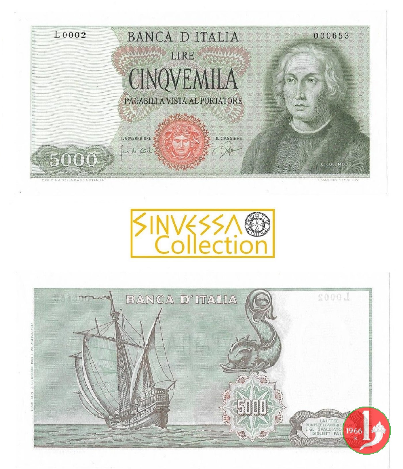 5.000 lire Colombo - Secondo tipo (1977) Dritto | Tue 5/11/24 - 11:03 | |||