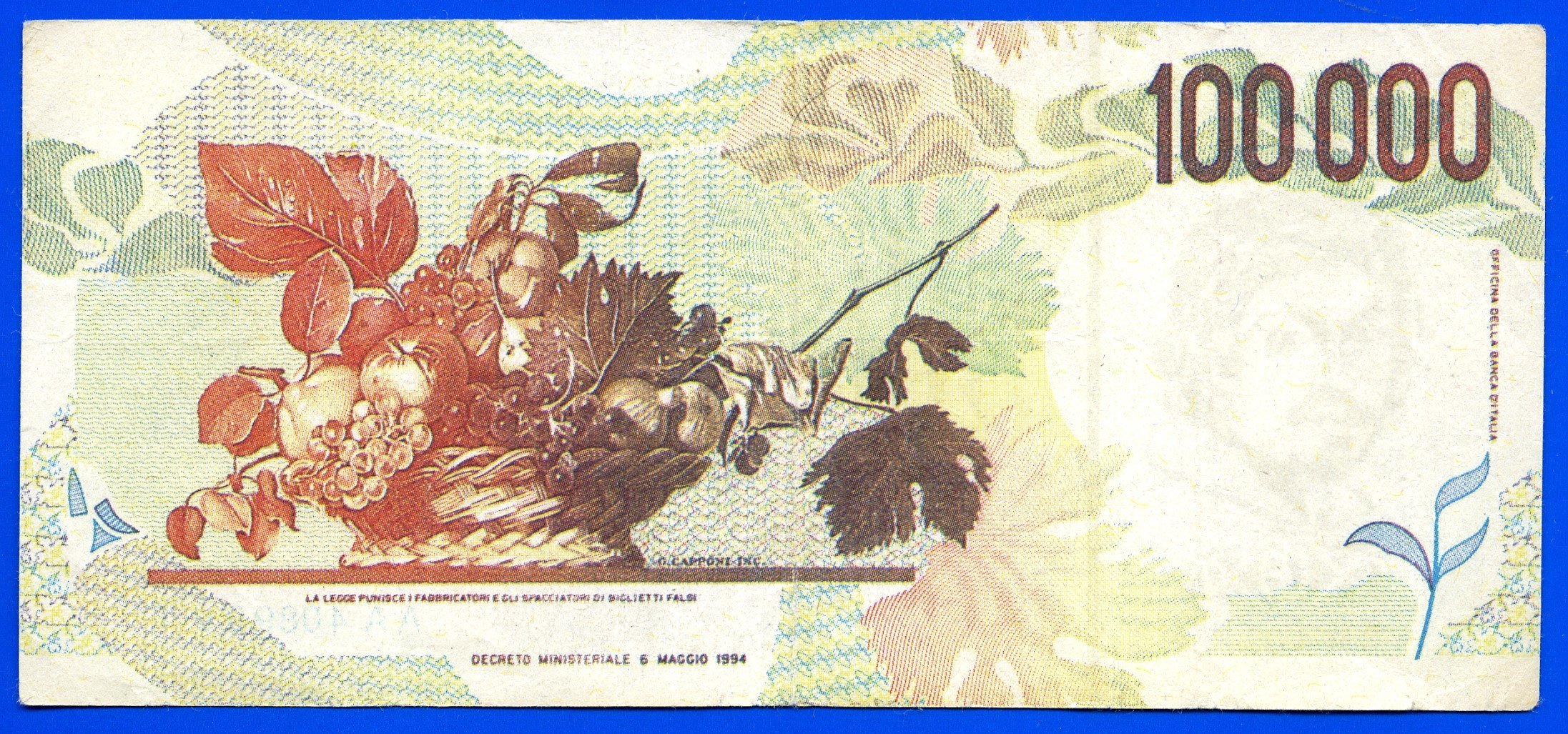 100.000 lire Caravaggio (1986) Verso | anonimo | Thu 29/02/24 - 09:01 | ||