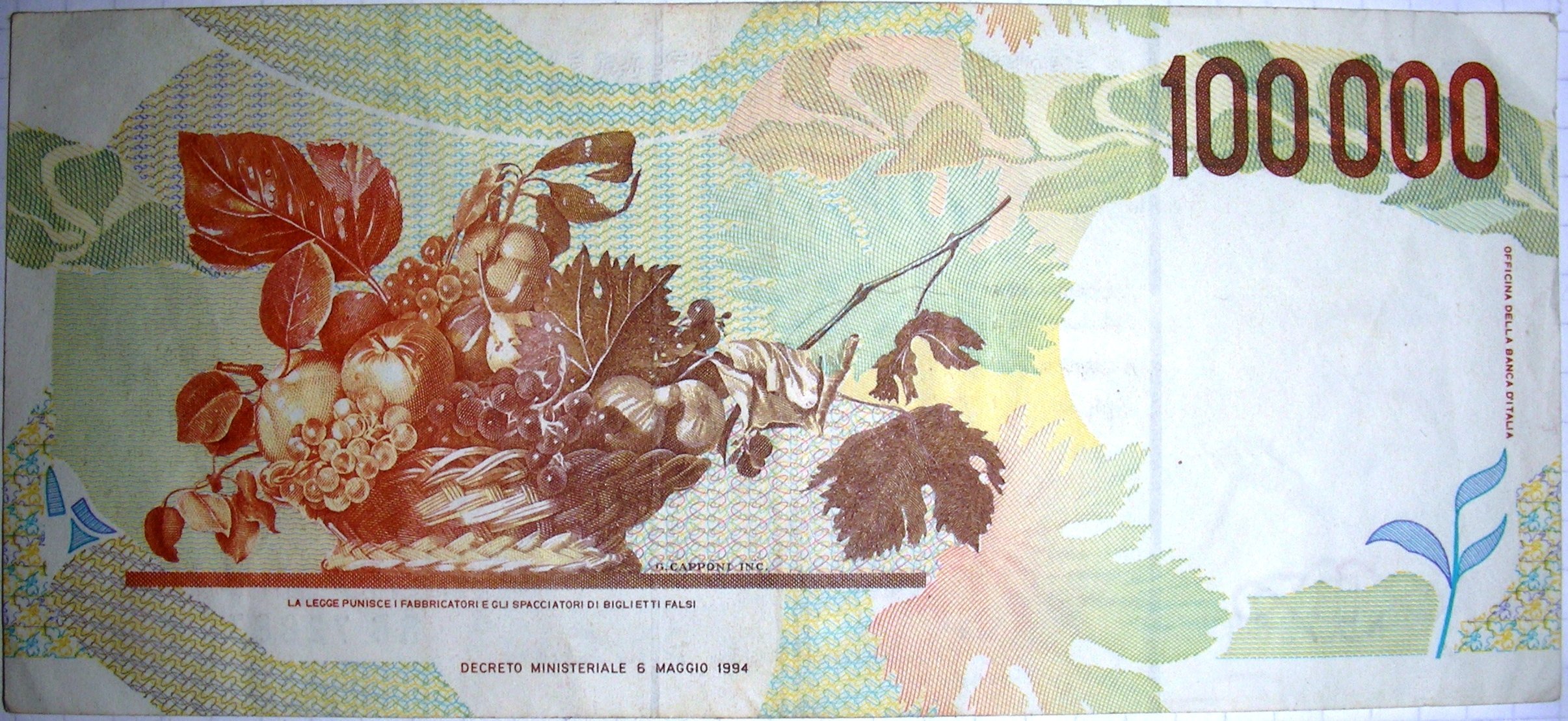 100.000 lire Caravaggio (1995) Verso | Fri 24/06/16 - 15:06 | |||