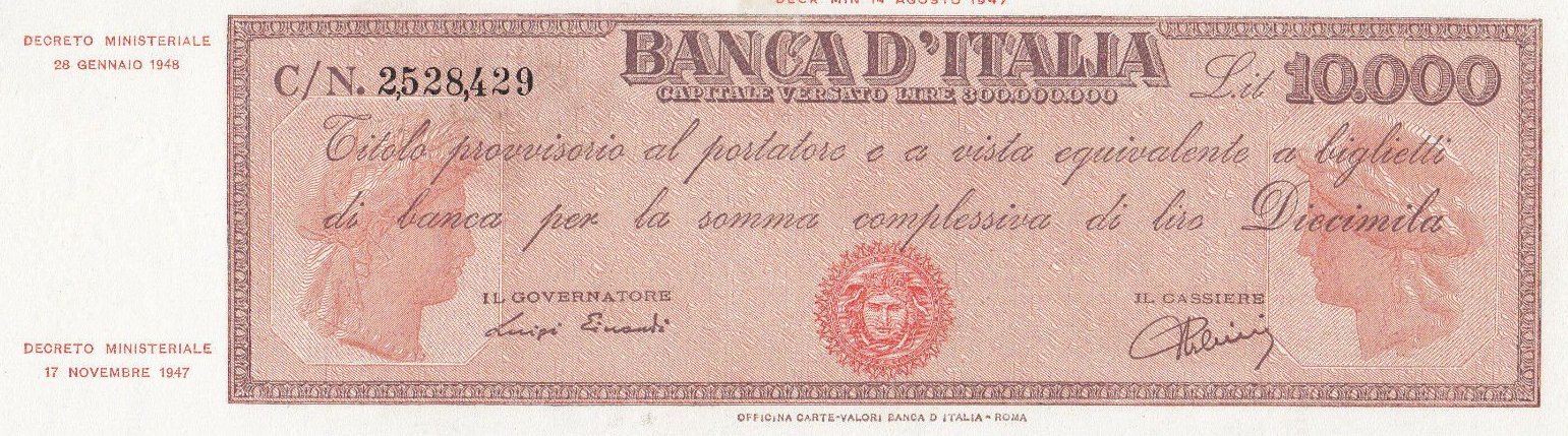10.000 lire Titolo Provvisorio (1948) | Sat 21/02/15 - 07:52 | |||