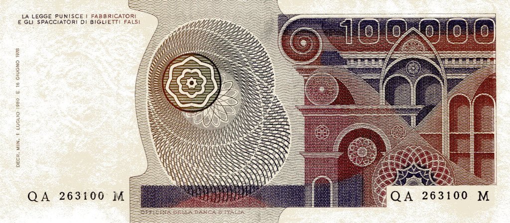 100.000 lire Caravaggio (1983) Verso | Sat 27/01/18 - 10:53 | |||
