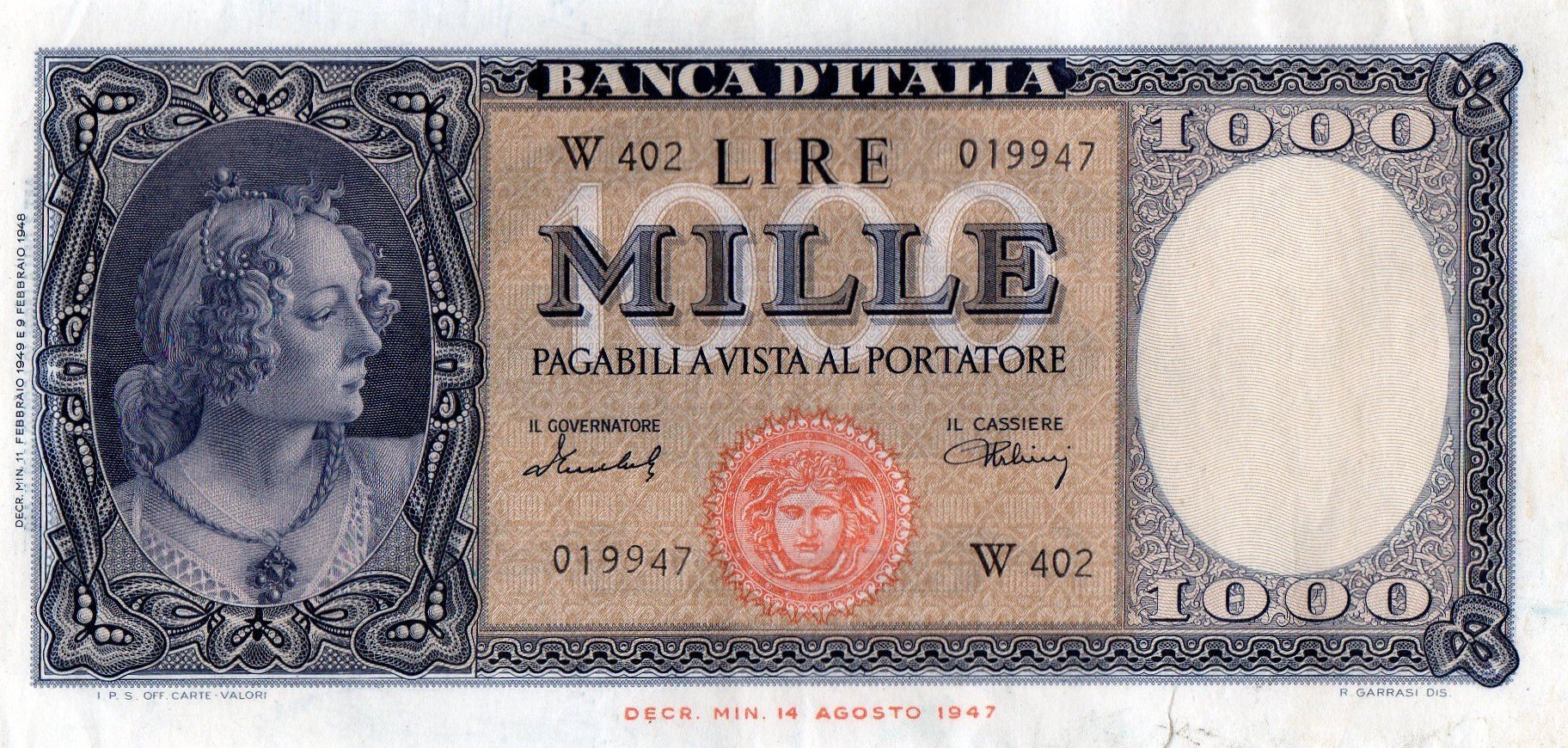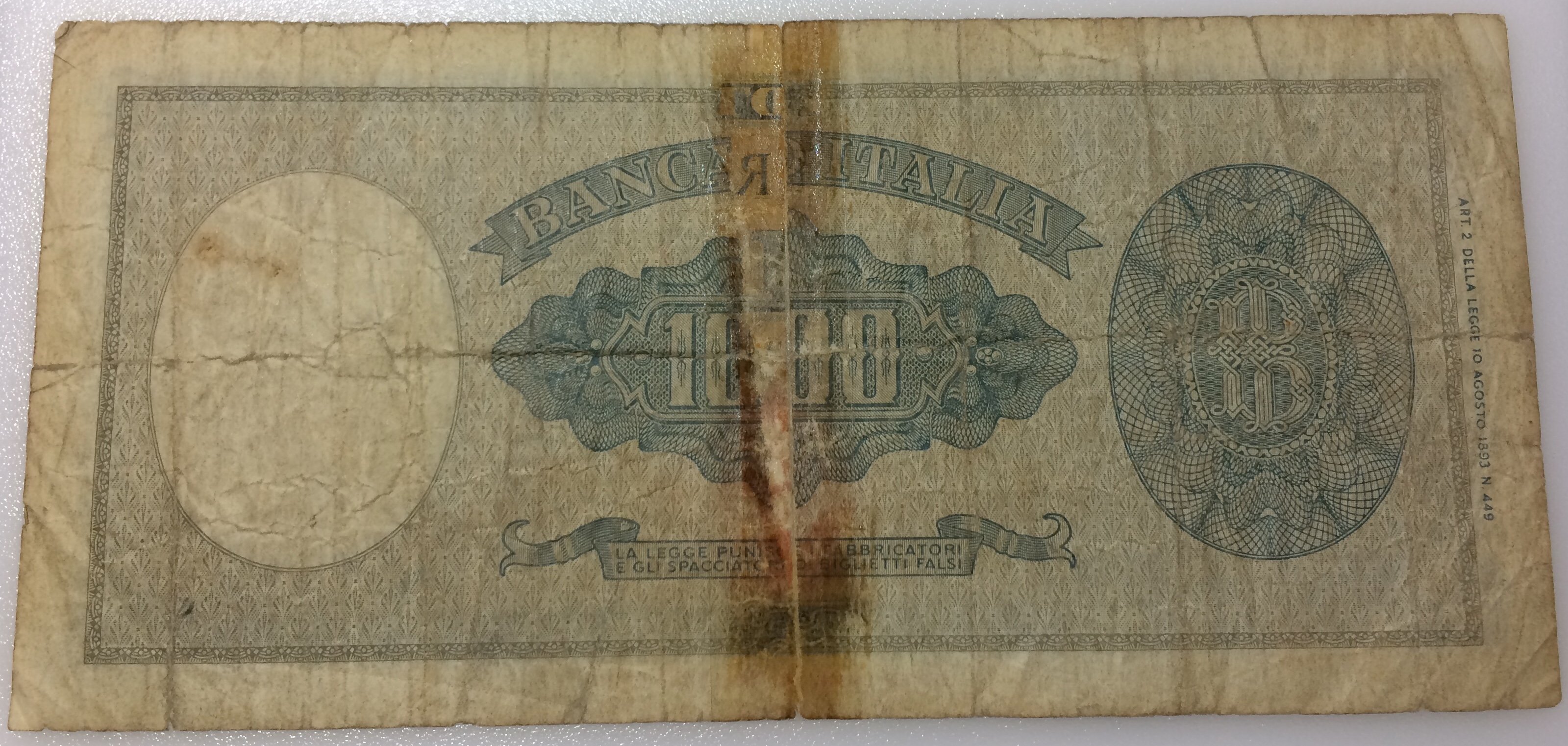 1.000 lire Busto d'Italia (1948) Verso | Fri 24/06/16 - 14:37 | |||