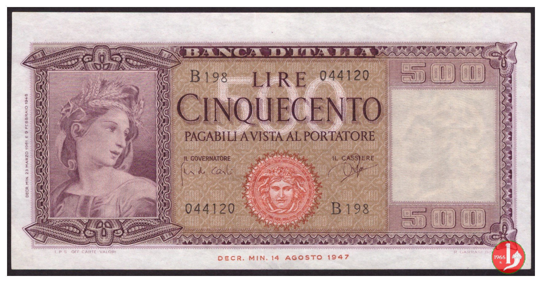 500 lire Italia ornata di spighe (1961) Verso | Mon 3/04/17 - 17:13 | |||
