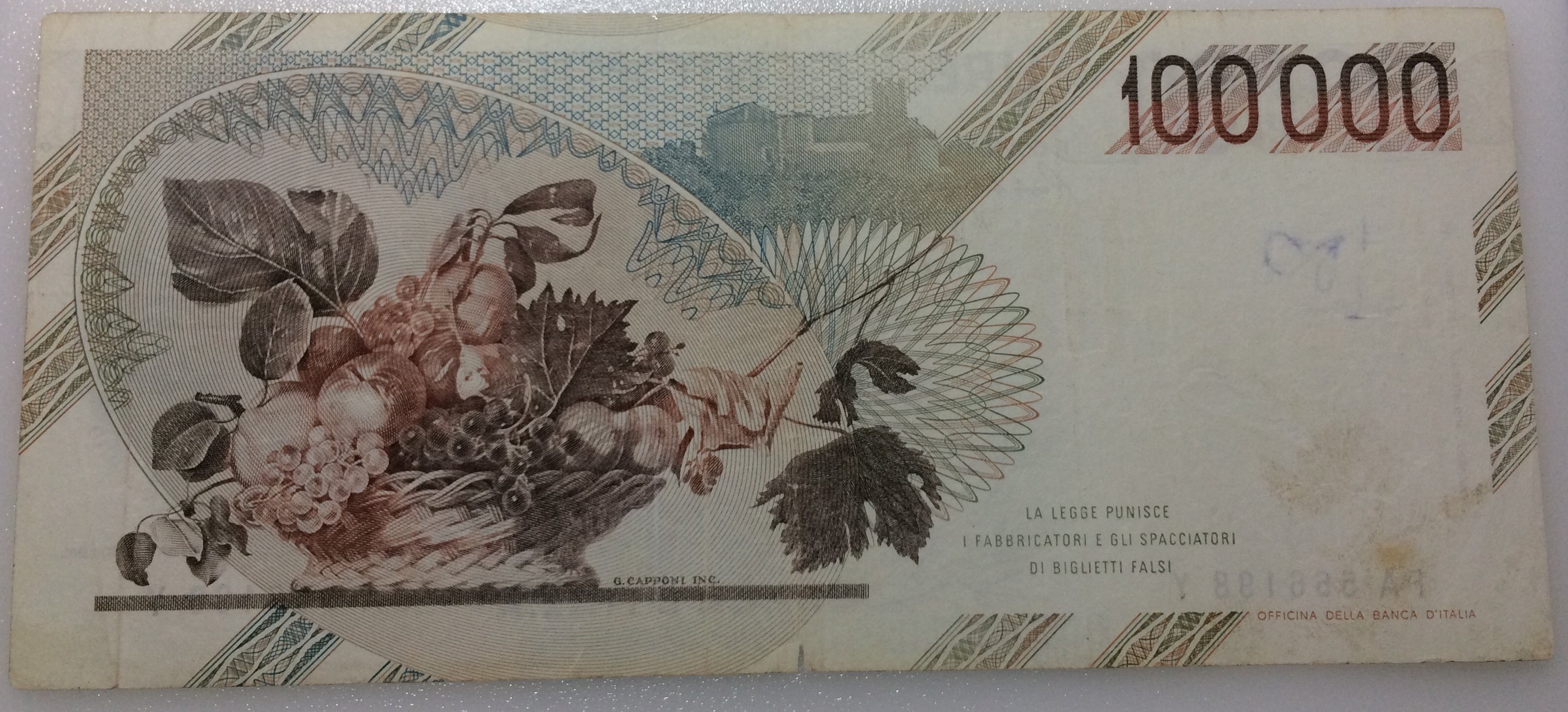 100.000 lire Caravaggio (1990) Verso | Fri 24/06/16 - 15:07 | |||