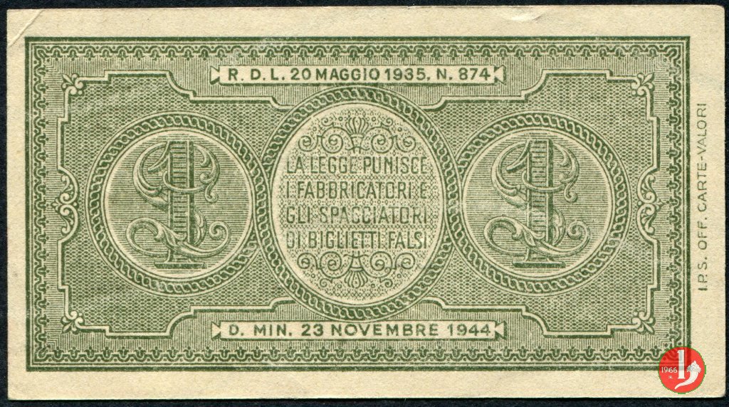 1 Lira "Italia Laureata" (1944) Verso | Mon 16/06/14 - 14:46 | |||