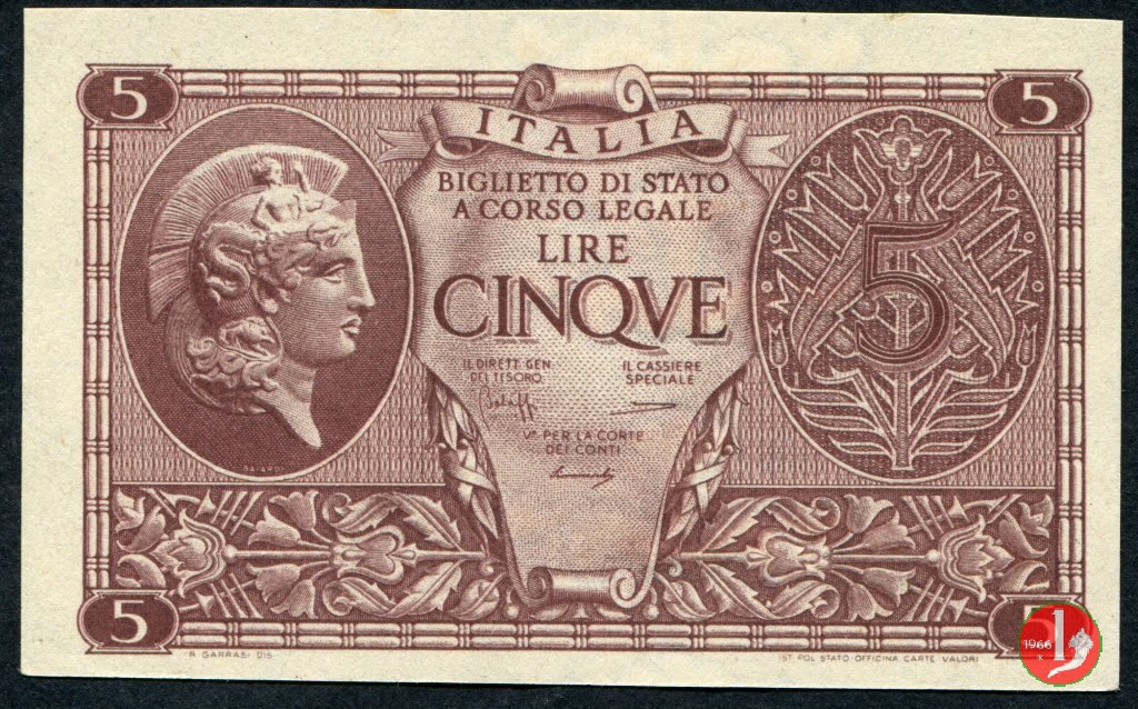 5 Lira "Atena Elmata" (1944) Verso | Mon 16/06/14 - 15:29 | |||