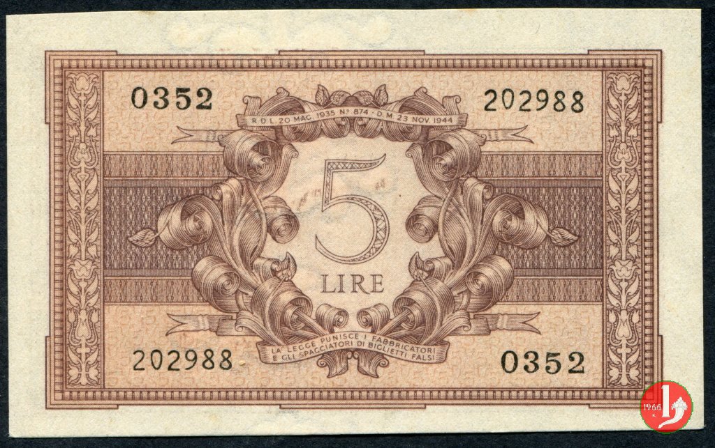 5 Lire Impero (1944) Dimensioni 97x62 mm Dritto | Sun 15/06/14 - 23:39 | |||