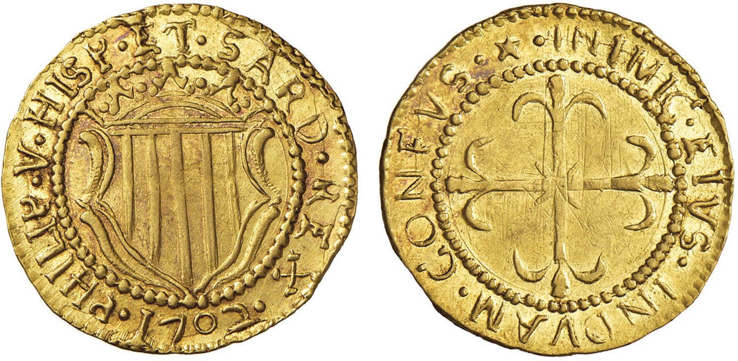 Scudo d'oro (1702 - Cagliari) Asta n° 47 del 8/12/2012, Lotto n°: 697 Verso | InAsta | Wed 2/01/13 - 14:04 | ||
