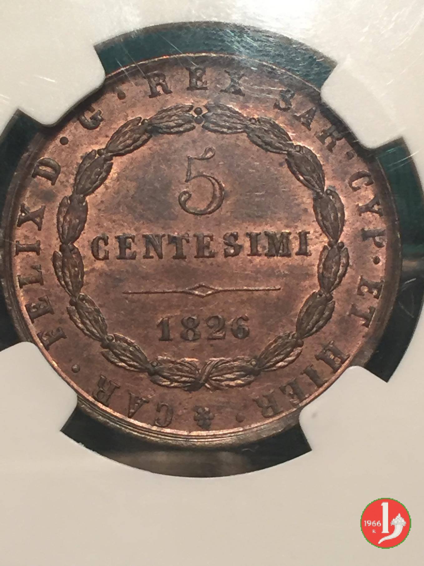 5 centesimi (1826 - Torino) MS 63 RB Dritto | Fri 15/12/17 - 22:39 | |||