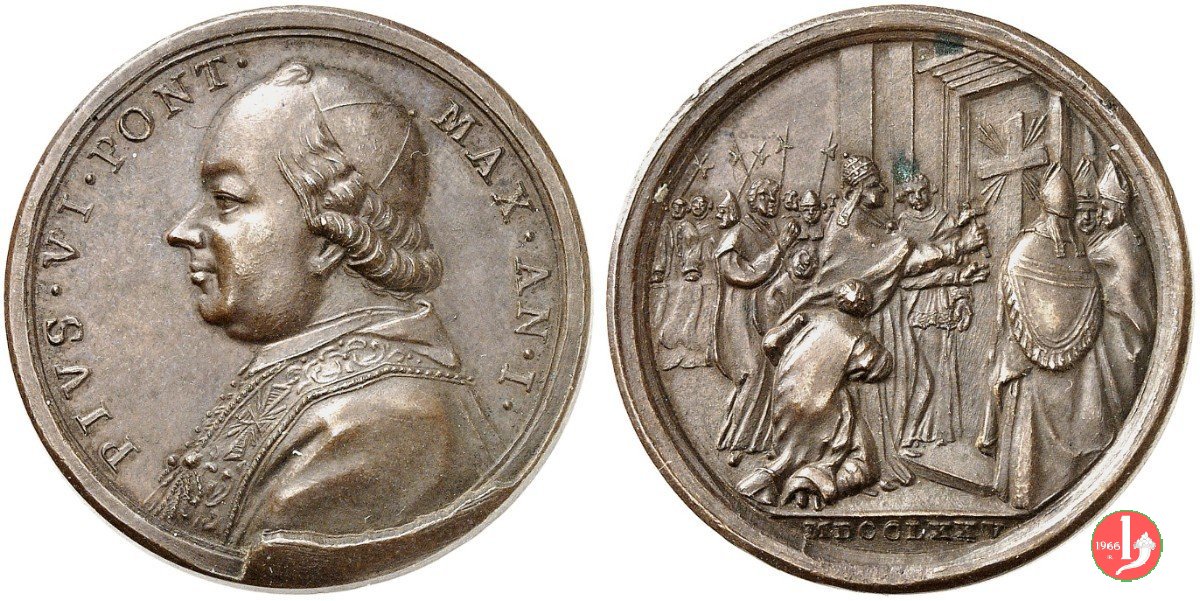 A. I -Apertura della Porta Santa -P16 (1775 - Roma) al D/ PIVS • VI • PONT • - MAX • AN • I • -- Busto del Pontefice verso sinistra con berretto, mozzetta e stola (notasi rispetto ai tipo in argento ed oro: differente acconciatura dei capelli e della stola) al R/ il Papa con triregno con martello su mano destra apre la Porta Santa (nelle descrizioni precedenti vi è scritto che chiude la Porta Santa) circondato da Vescovi, dignitari - il tutto scortato dalla Guardia Svizzera. all'esergo la data in caratteri romani MDCCLXXV Dritto | Wed 23/04/14 - 10:03 | |||