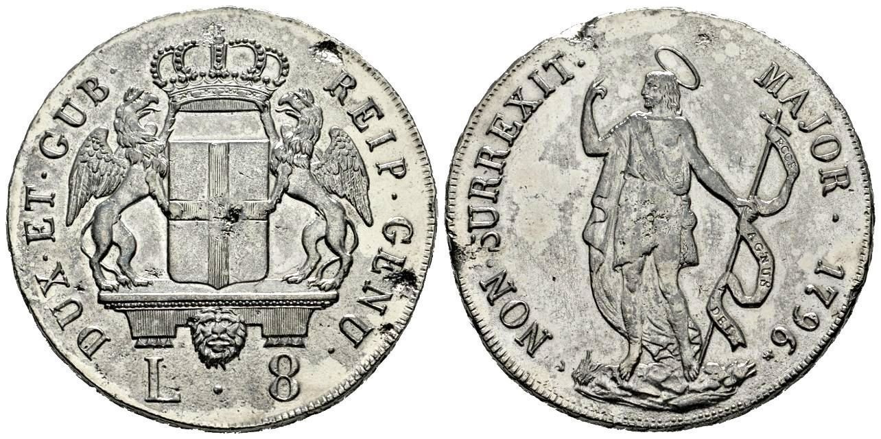8 lire nuove (1795 - Genova) Dritto | Mon 22/04/24 - 17:19 | |||