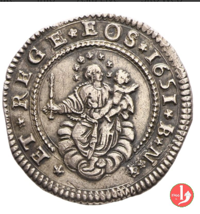 1/8 di scudo stretto (1651 - Genova) Asta Montenegro 31, lotto 70 (R) Verso | Casa d'aste Montenegro | Sun 26/11/23 - 14:28 | ||