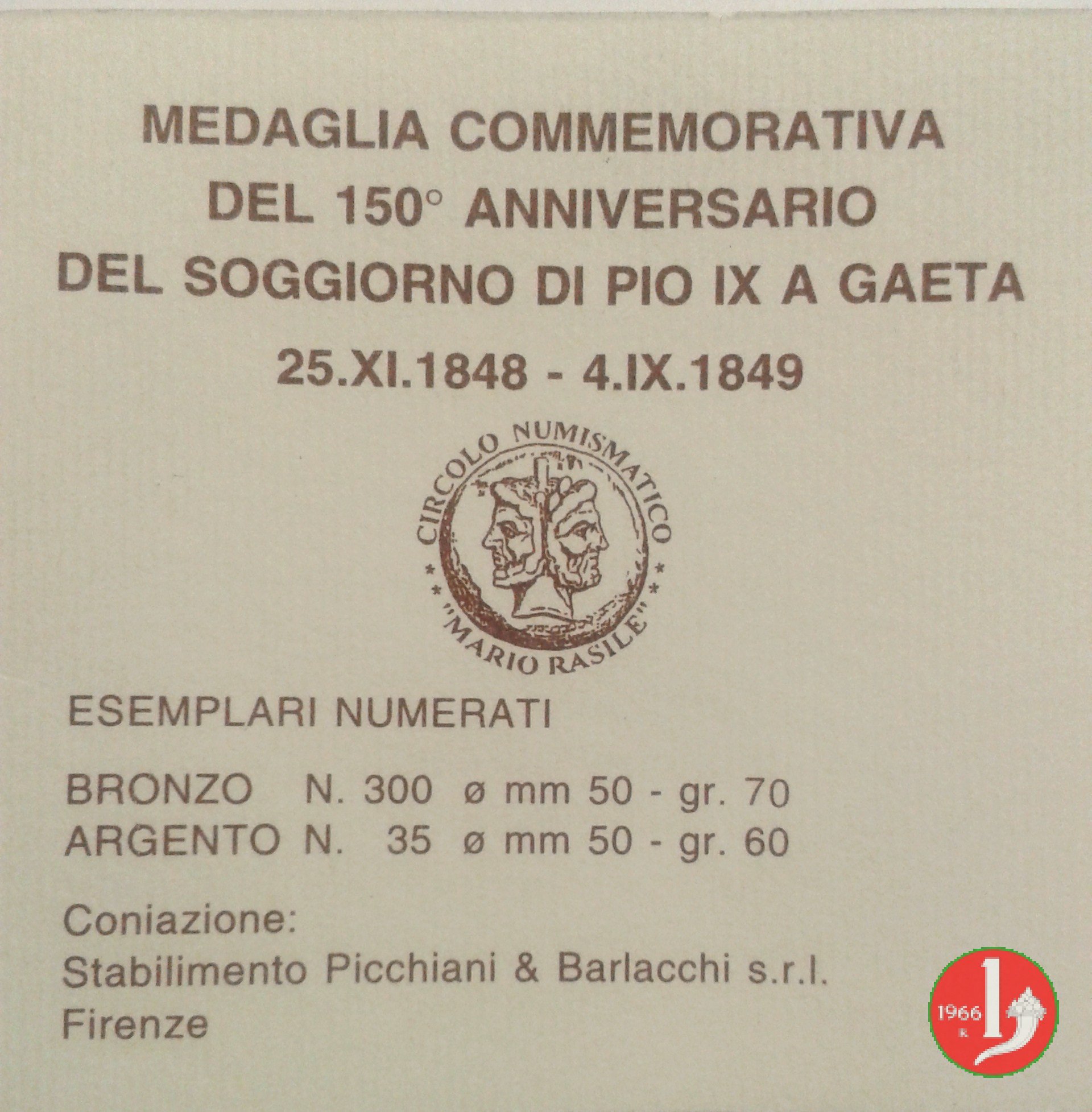 150° Esilio di Gaeta 1998 (1998) (D) Dritto | Wed 27/04/16 - 08:58 | |||