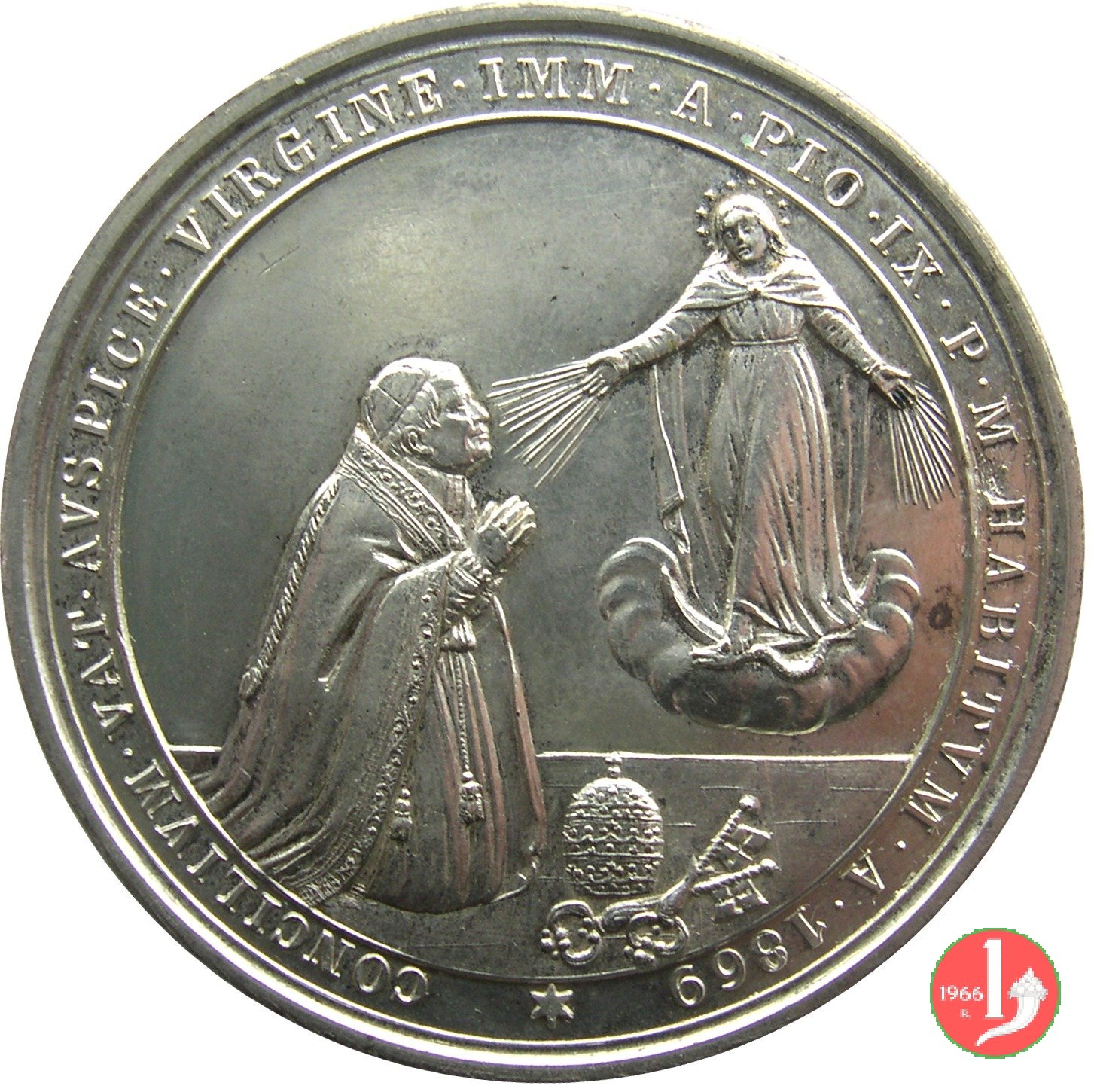 Concilio Ecum. -Pio IX e l'Immacolata -B17 (1869) D/ * CONCILIVM • VAT • AVSPICE • VIRGINE • IMM • A • PIO • IX • P • M • HABITVM • A • 1869 Il Papa a sx, genuglesso verso dx, prega L'Immacolata a dx, su nube, a braccia aperte coronata da stelle, in basso, a terra, il triregno e le chiavi R/* VISVM • EST • SPIRITVI • SANCTO • ET • NOBIS * in basso al centro rosetta Lo Spirito Santo radiante sopra San Pietro nimbato e seduto tra due Vescovi (con mitra) della Chiesa romana e due Patriarchi (con tiara) delle Chiese d'Oriente (B) | Tue 7/06/16 - 18:23 | |||