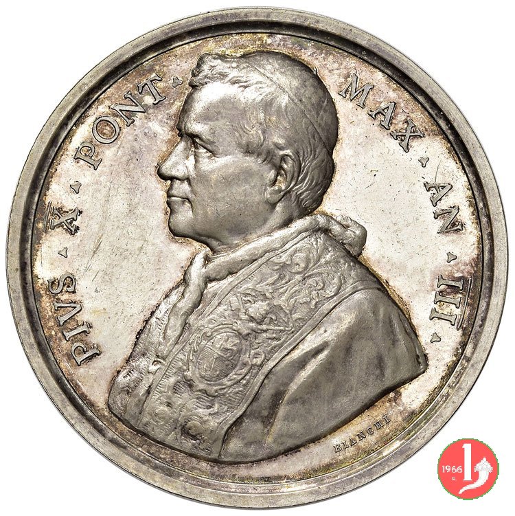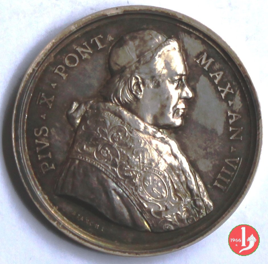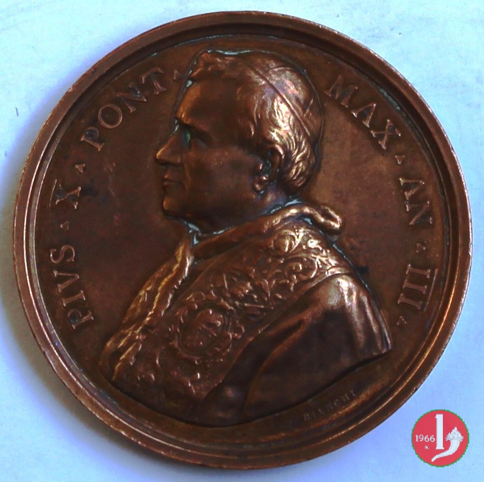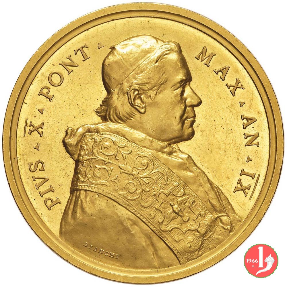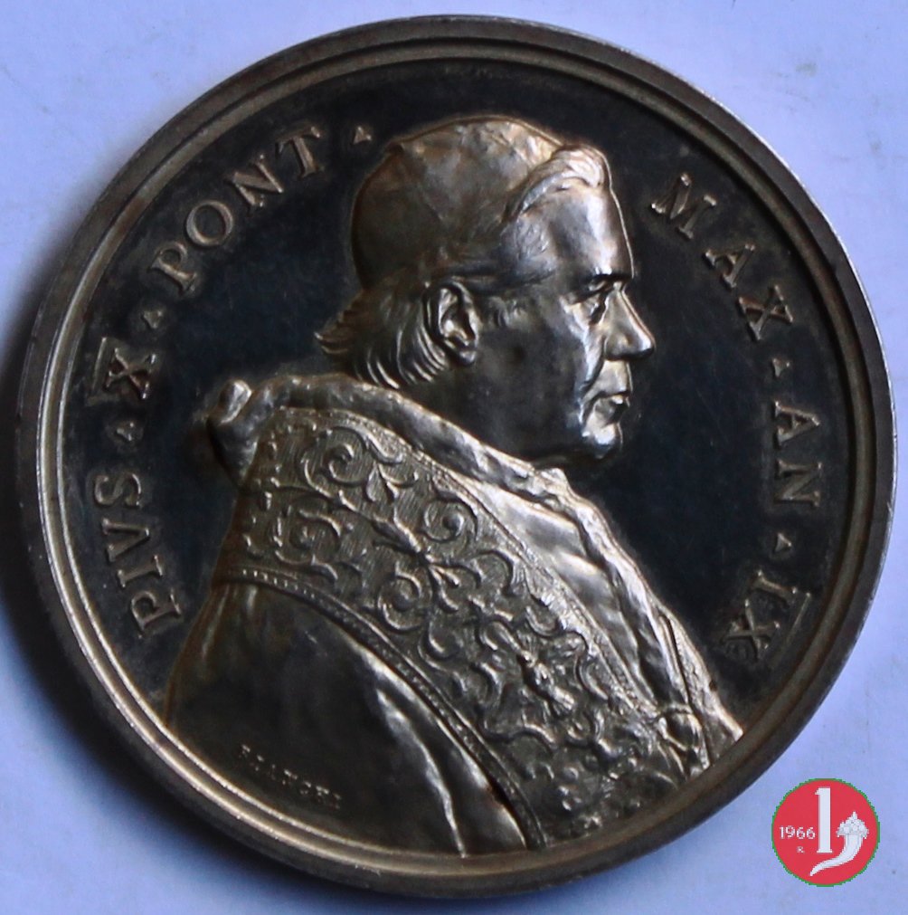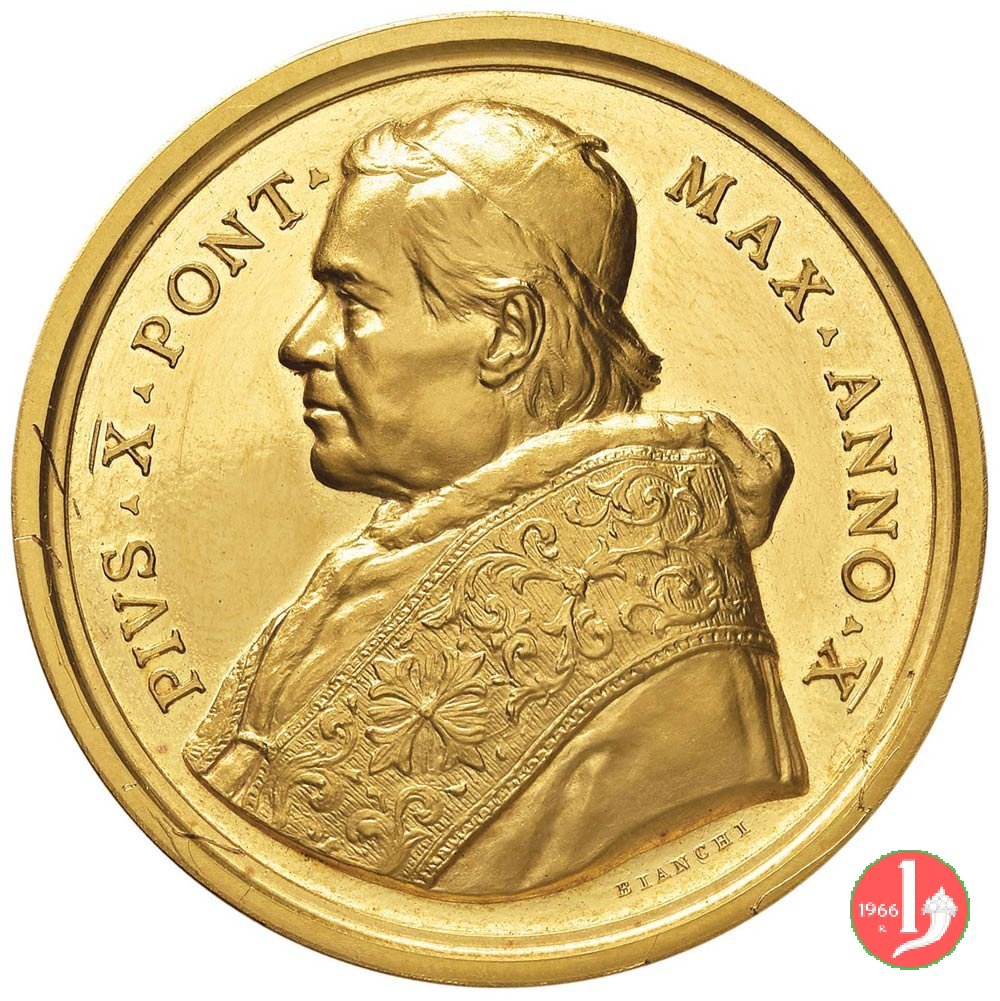 B.V. Maria Immacolata -CM101 (1903) busto del Pontefice con zucchetto, mozzetta e stola rivolto verso destra – dietro la spalla: S J attorno ai lati: PIO X e PONT • MAX • R/ Immacolata Concezione nimbata con corona di dodici stelle, stante su crescente lunare e serpente cui schiaccia la testa - attorno tra rosette: a sinistra * B • V. MARIA * a destra * IMMACOLATA * Coniata dalla stabilimento Stefano Johnson di Milano