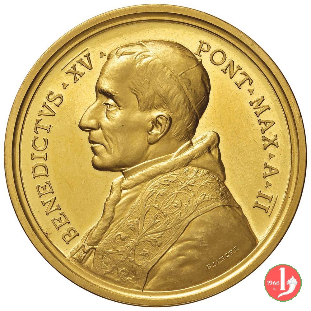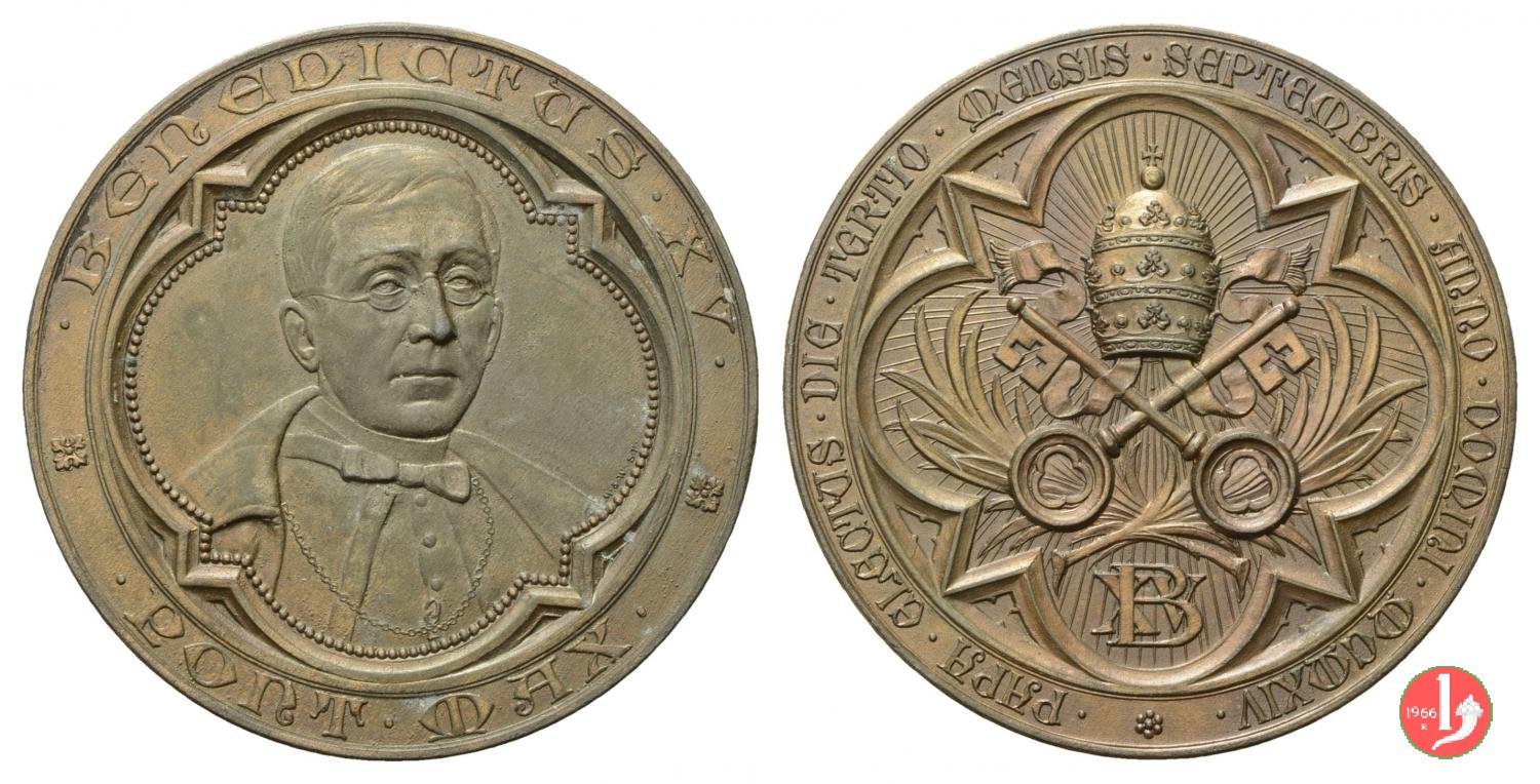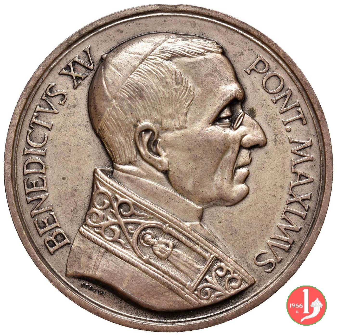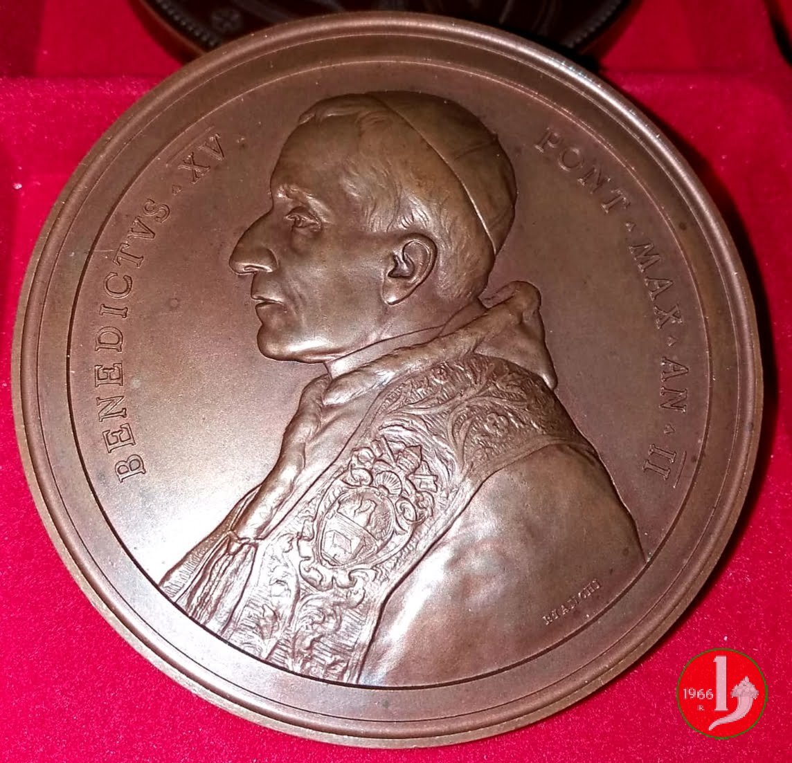A. VI -Canonizzazione del 1920 -CM185 (1920) MEDAGLIA - Benedetto XV anno VI di Pontificato 1920 - commemorativa delle Canonizzazioni del 1920 - Medaglia ufficiale annuale, coniata con fondo lucido, emessa il 29-06-1920 a ricordo della Canonizzazione di Giovanna D'Arco, Margherita M. Lacoque e Gabriele Dell'Addolorata al Diritto: busto del Papa con zucchetto, mozzetta e stola verso sinistra - sul taglio della spalla: MISTRUZZI, attorno la legenda: BENEDICTVS • XV • PONT • MAX • ANNO • VI • - -- al Rovescio: I tre nuovi Santi sulle nubi radiati dalla colomba dello Spirito Santo - attorno la legenda: CAELITVM • SANCTORVM • HONORIBVS • AVCTI • - all'esergo la data: MCMXX Dritto | Thu 1/07/21 - 15:46 | |||