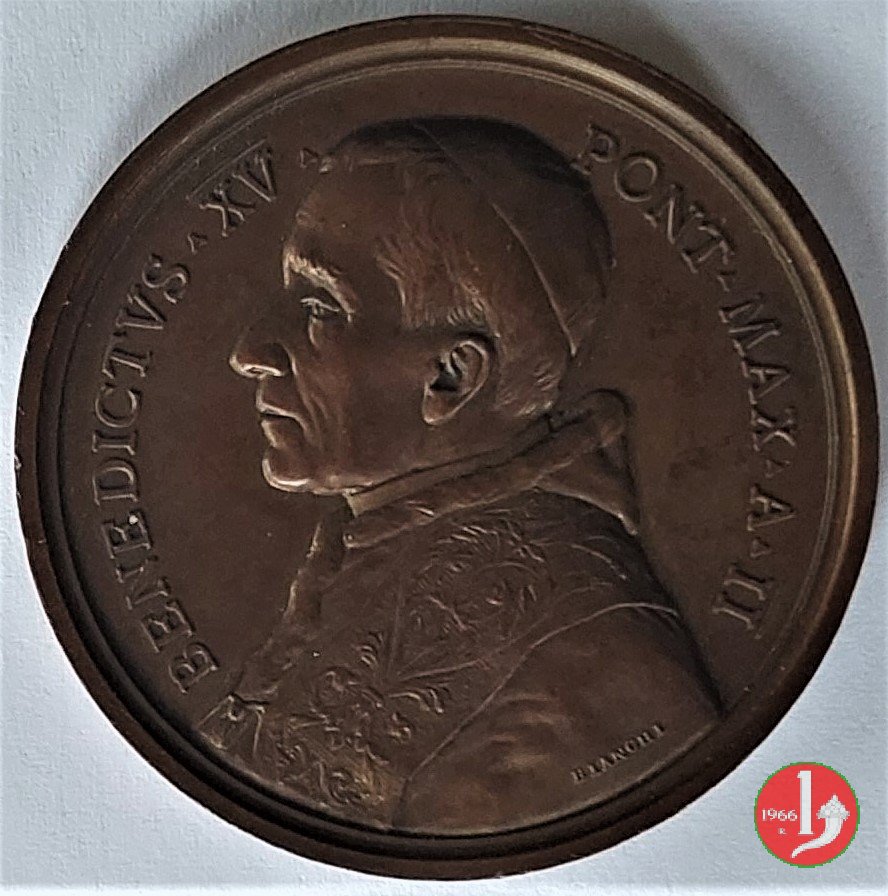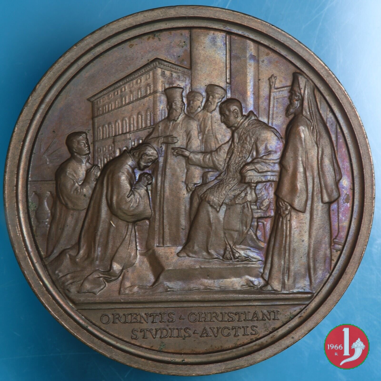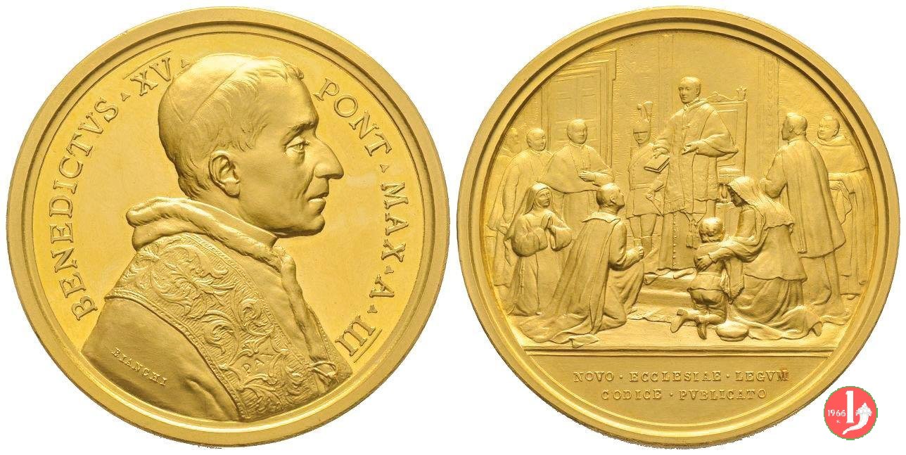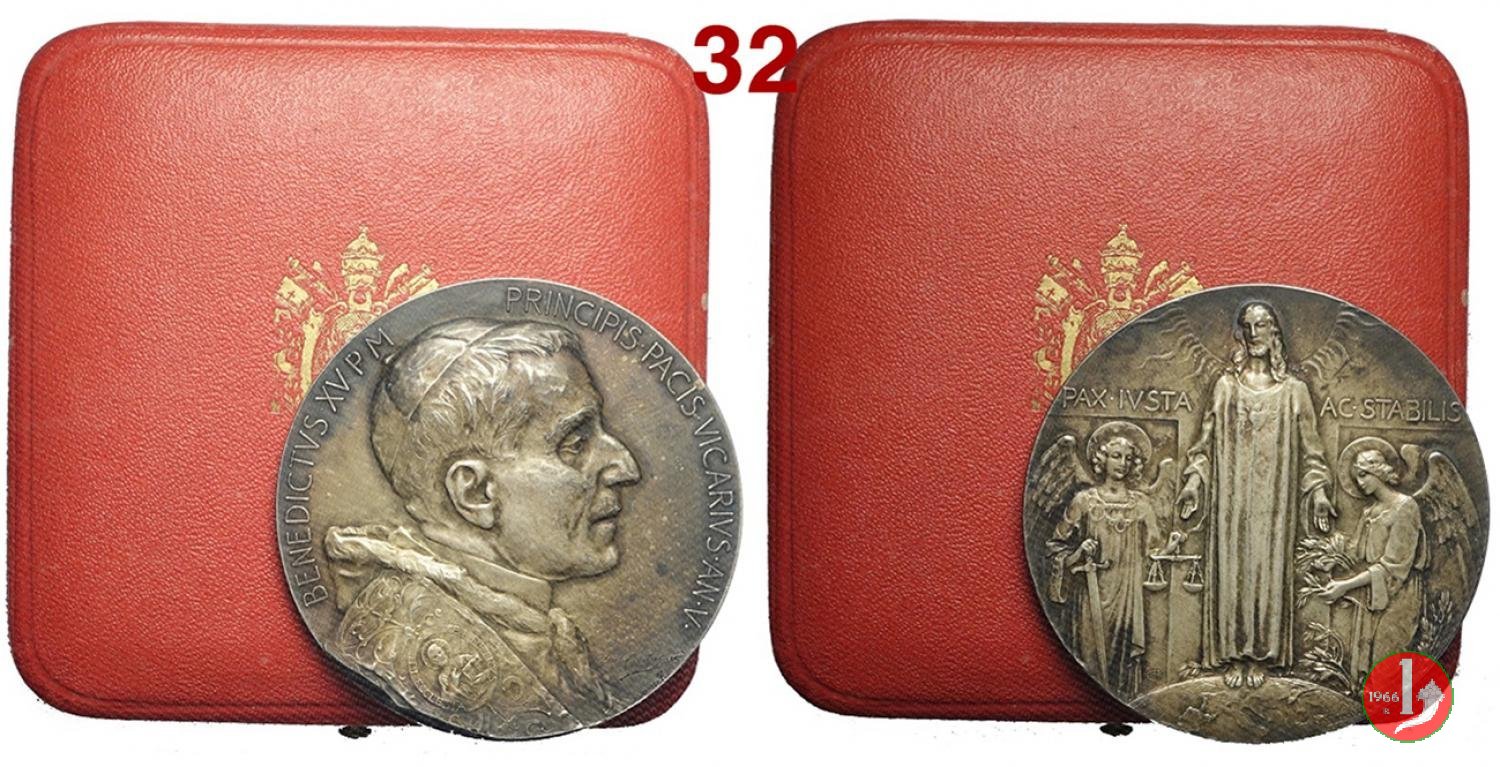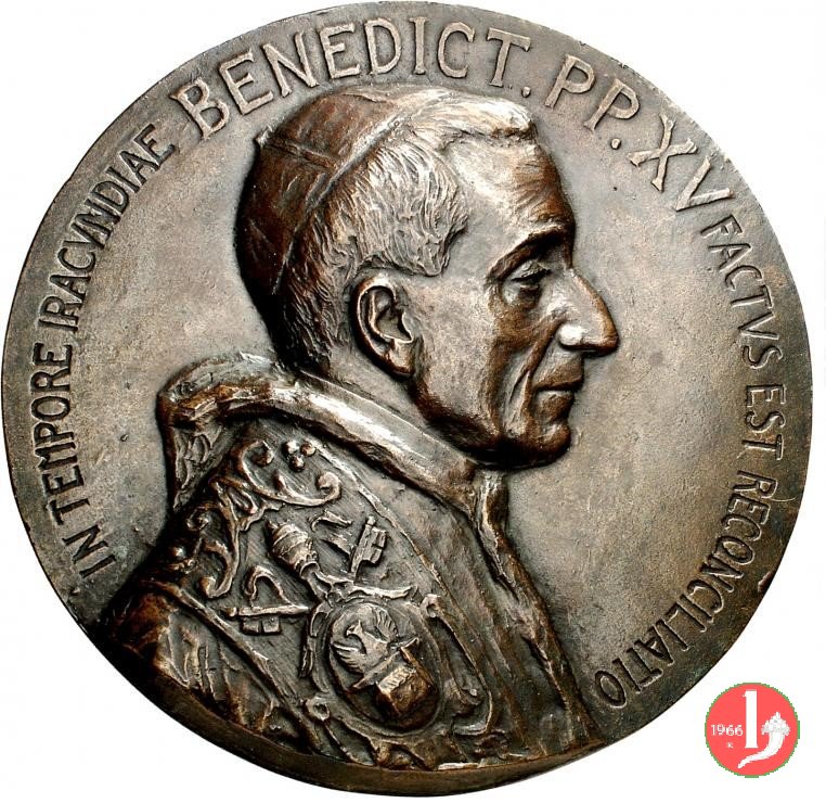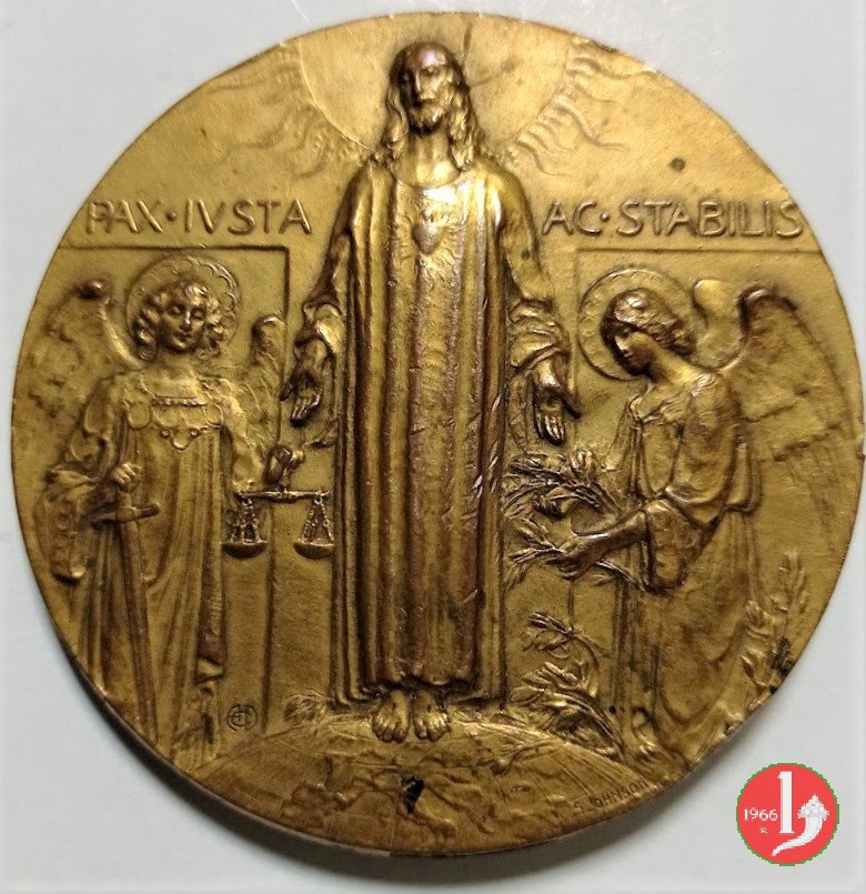 A. VI -Canonizzazione del 1920 -CM185 (1920) MEDAGLIA - Benedetto XV anno VI di Pontificato 1920 - commemorativa delle Canonizzazioni del 1920 - Medaglia ufficiale annuale, coniata con fondo lucido, emessa il 29-06-1920 a ricordo della Canonizzazione di Giovanna D'Arco, Margherita M. Lacoque e Gabriele Dell'Addolorata al Diritto: busto del Papa con zucchetto, mozzetta e stola verso sinistra - sul taglio della spalla: MISTRUZZI, attorno la legenda: BENEDICTVS • XV • PONT • MAX • ANNO • VI • - -- al Rovescio: I tre nuovi Santi sulle nubi radiati dalla colomba dello Spirito Santo - attorno la legenda: CAELITVM • SANCTORVM • HONORIBVS • AVCTI • - all'esergo la data: MCMXX Dritto | Thu 1/07/21 - 15:46 | |||
