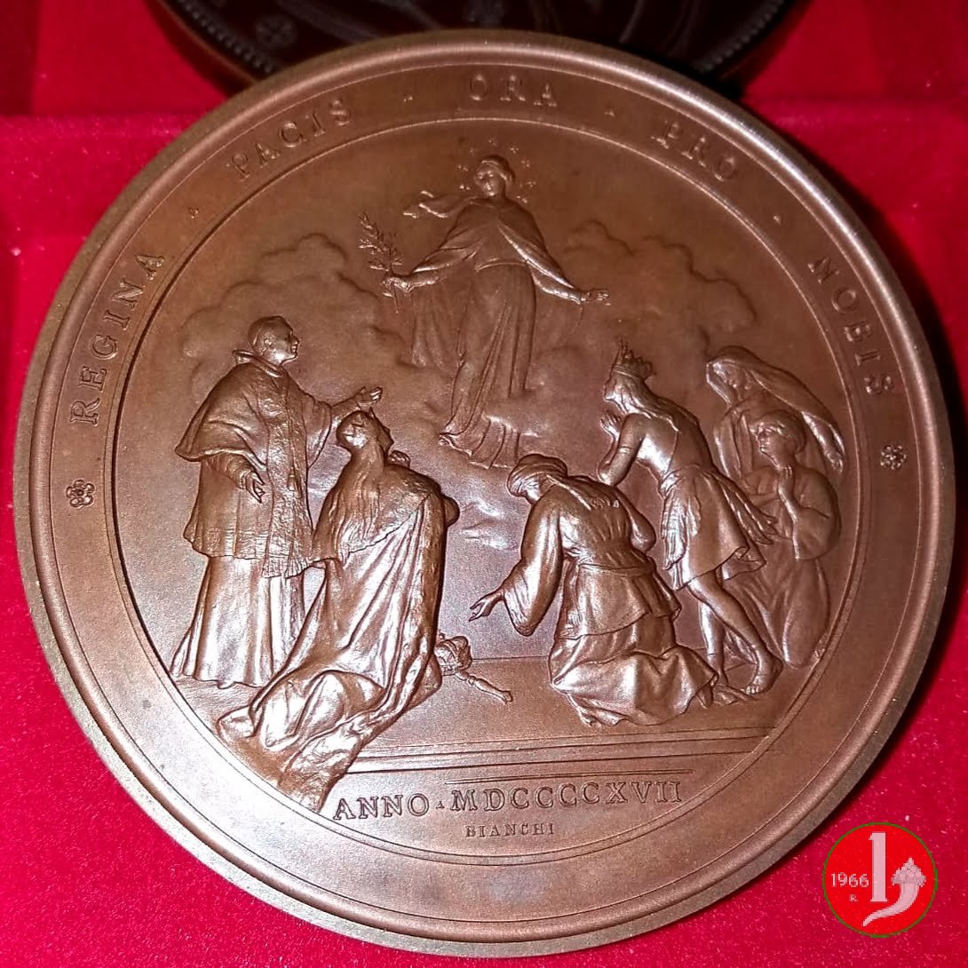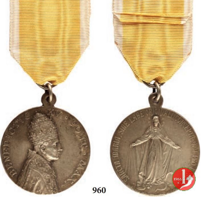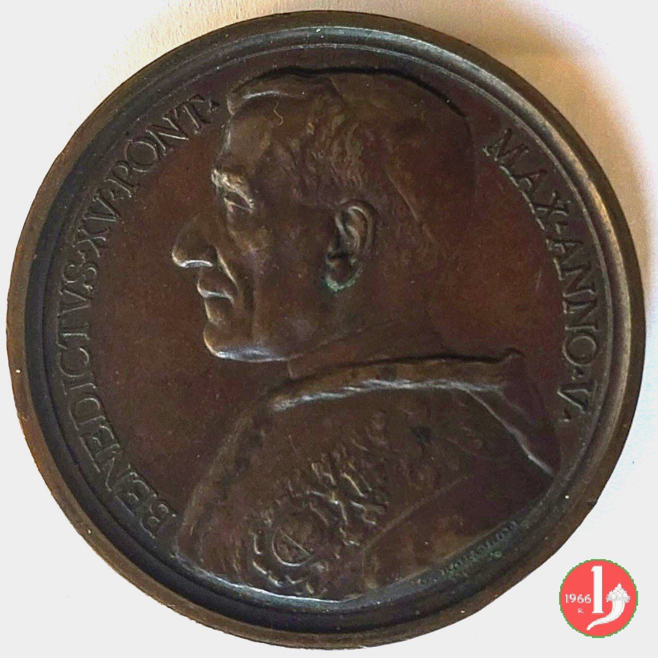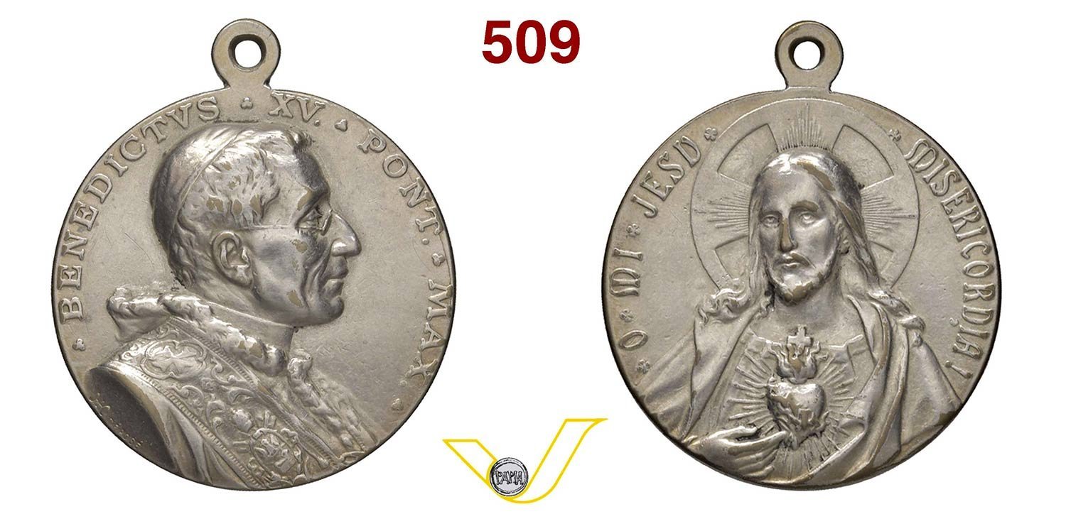 A. VI -Canonizzazione del 1920 -CM185 (1920) MEDAGLIA - Benedetto XV anno VI di Pontificato 1920 - commemorativa delle Canonizzazioni del 1920 - Medaglia ufficiale annuale, coniata con fondo lucido, emessa il 29-06-1920 a ricordo della Canonizzazione di Giovanna D'Arco, Margherita M. Lacoque e Gabriele Dell'Addolorata al Diritto: busto del Papa con zucchetto, mozzetta e stola verso sinistra - sul taglio della spalla: MISTRUZZI, attorno la legenda: BENEDICTVS • XV • PONT • MAX • ANNO • VI • - -- al Rovescio: I tre nuovi Santi sulle nubi radiati dalla colomba dello Spirito Santo - attorno la legenda: CAELITVM • SANCTORVM • HONORIBVS • AVCTI • - all'esergo la data: MCMXX Verso | Thu 1/07/21 - 15:46 | |||