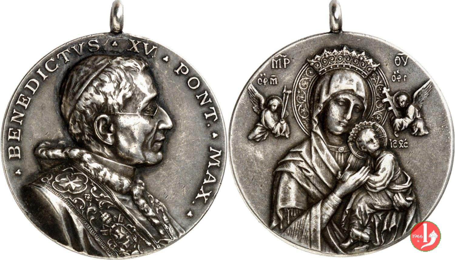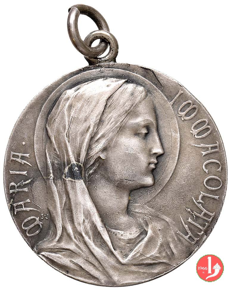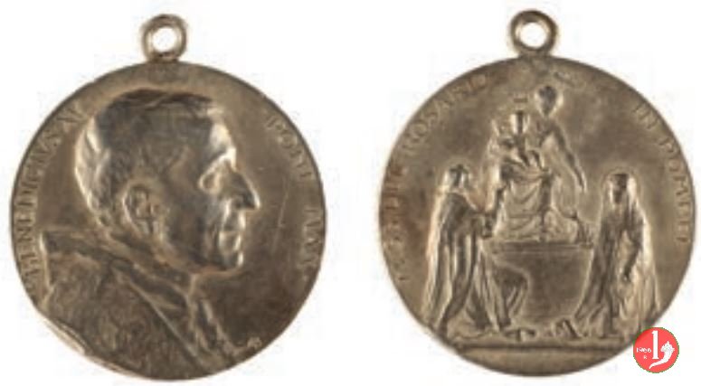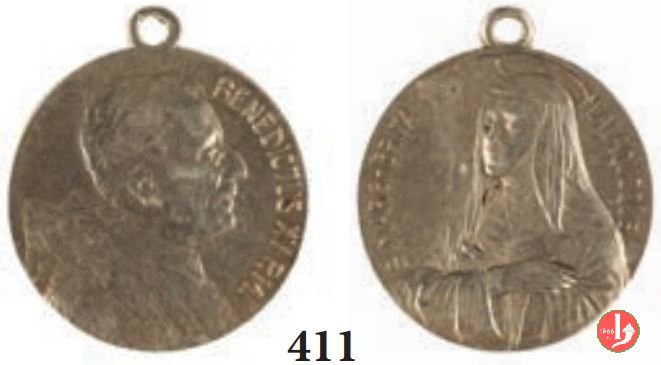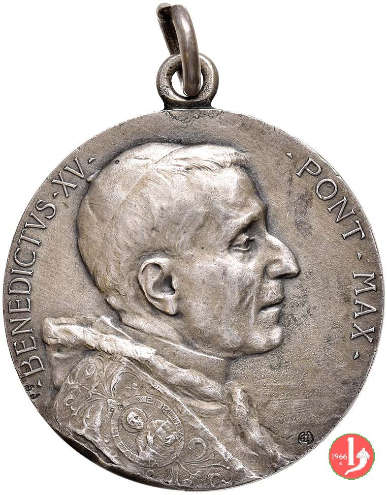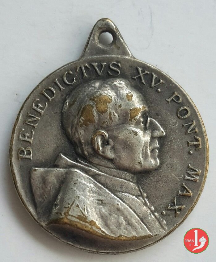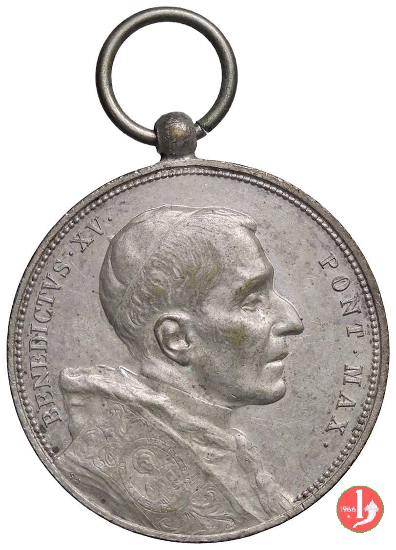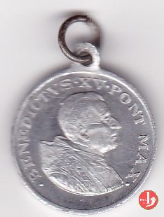 Immacolata Concezione 17mm (1914) Miraculous Medal, aluminum, no date obv: bust r. BENEDICTVS.XV.PONT MAX. rev: crowned, nimbate Virgin Mary standing in archway